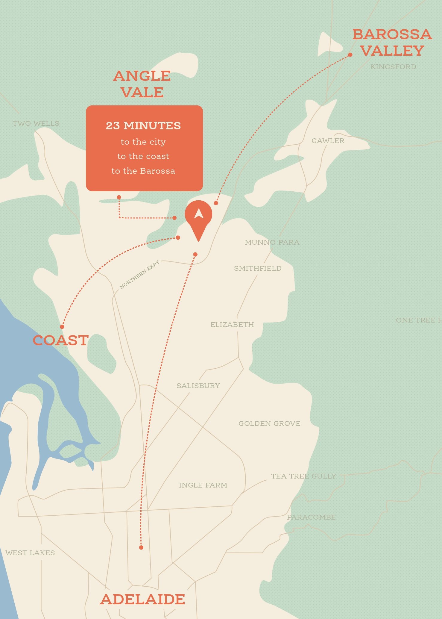| Distance to | Adelaide CBD - 30 km north Adelaide Airport - 34 km north |
