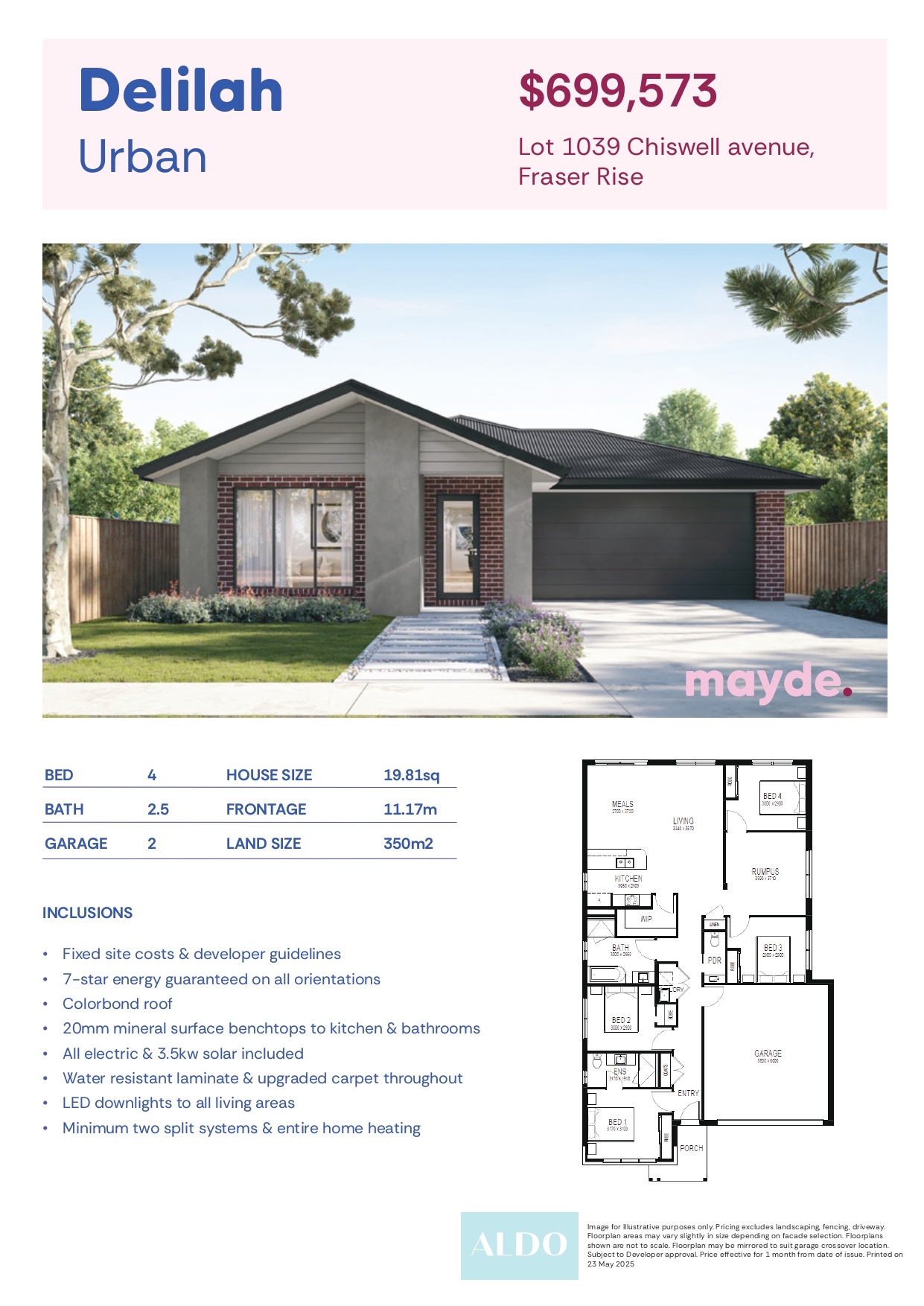 The Miller (Minimalist Facade) by Mayde Homes package includes: