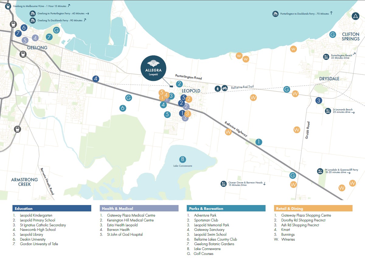 - Blend of Coastal and Urban Living: Nestled alongside future reserves and the famous Bellarine Rail Trail, Allegra combines the charm of coastal living with urban convenience.