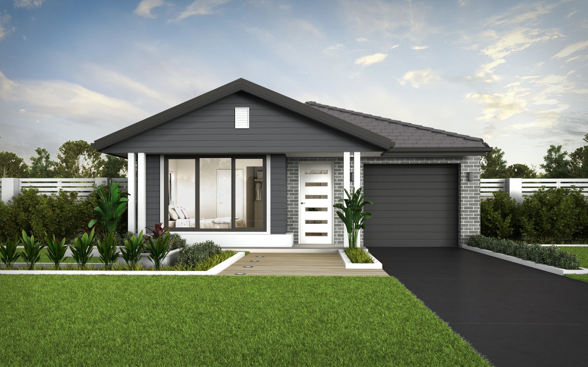 Driveway, turf, letterbox, and fencing