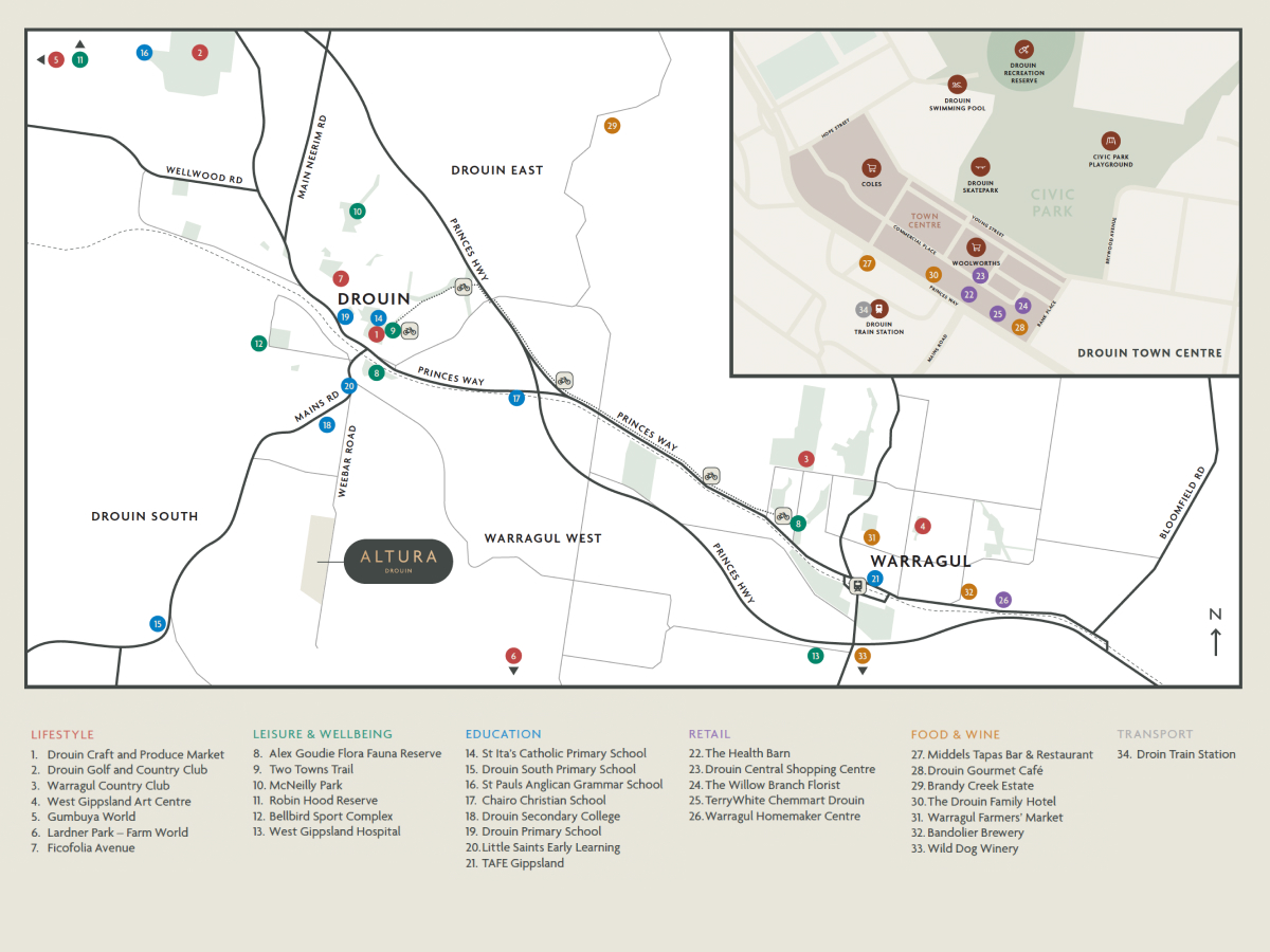 - Nestled in the picturesque town of Drouin, in the heart of West Gippsland, Altura presents a unique lifestyle that seamlessly blends the tranquillity of nature with the modern convenience of a connected regional centre.