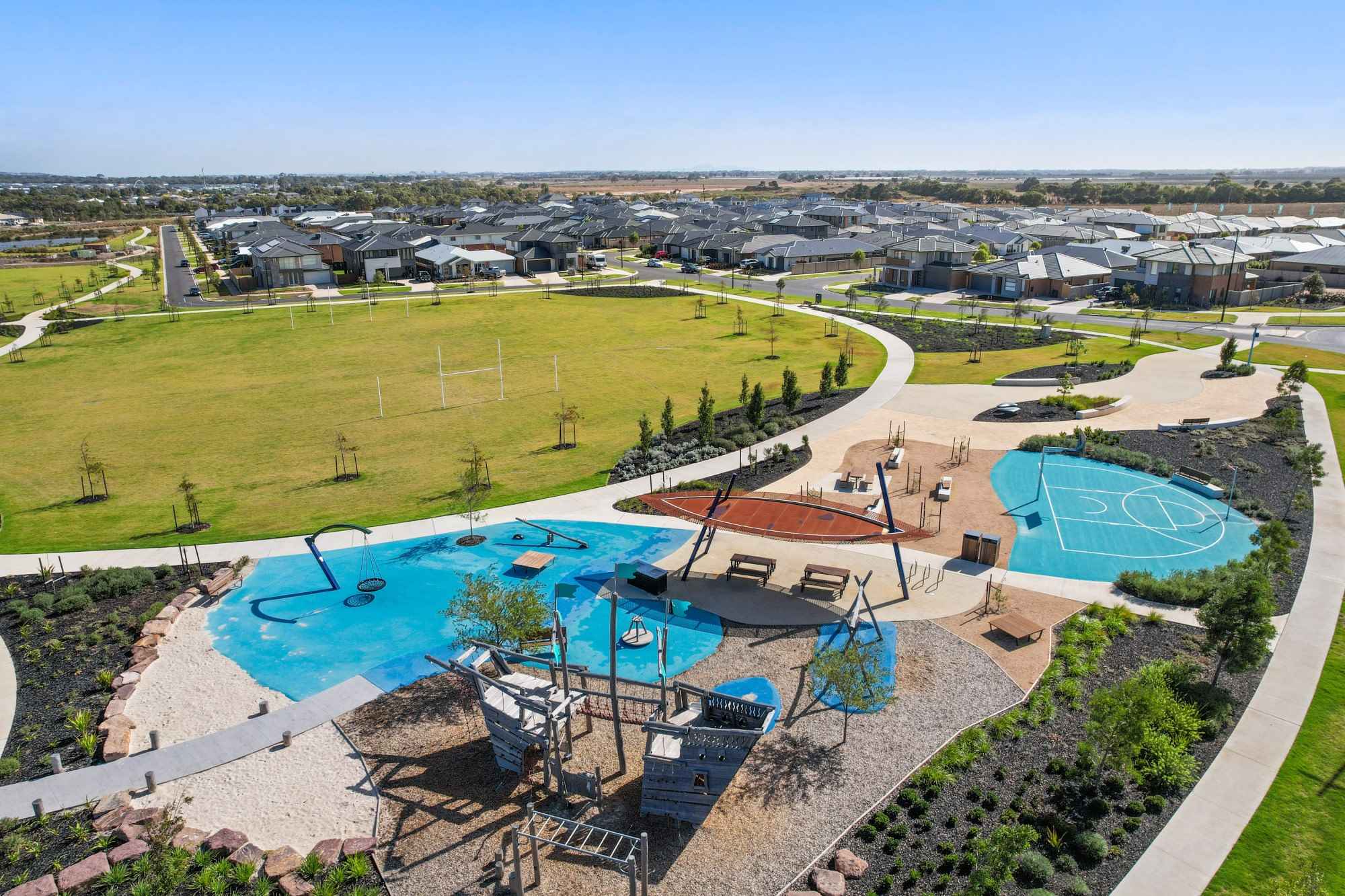 - Two parks in the estate featuring a slide, flying fox, sports fields, basketball court and bike paths