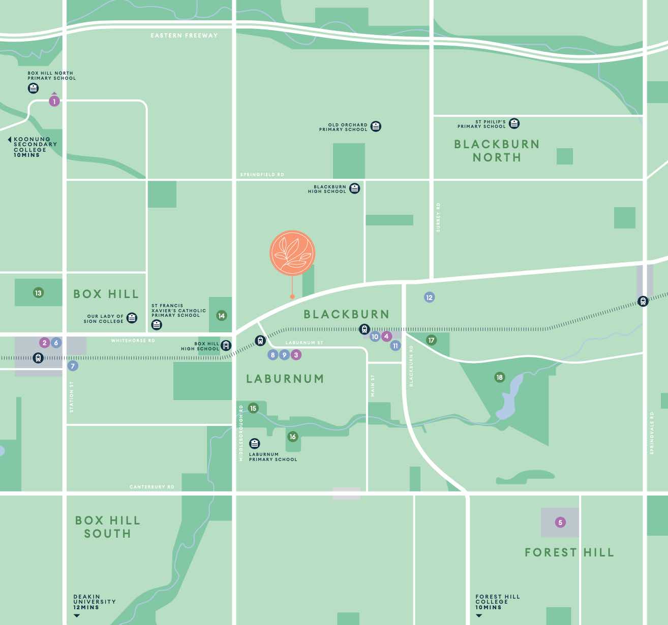 - Box Hill High School - 594m south-west