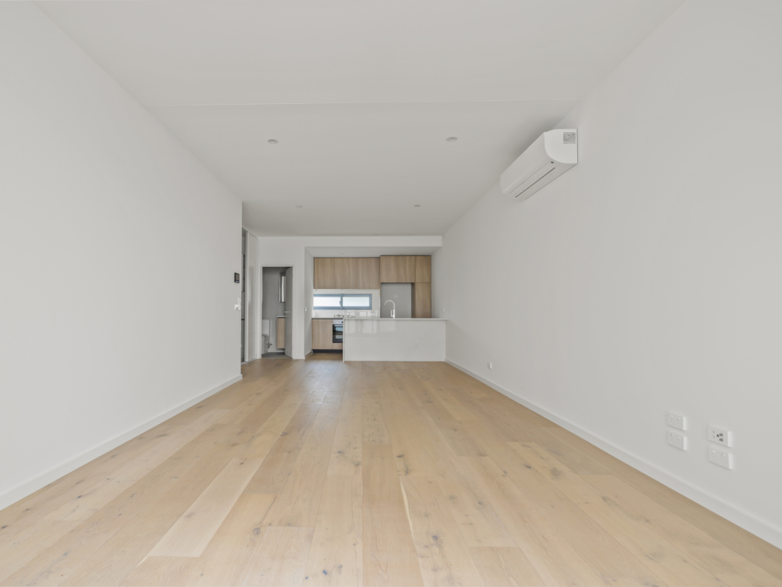 - Modern sleek lines and timber flooring in the living room