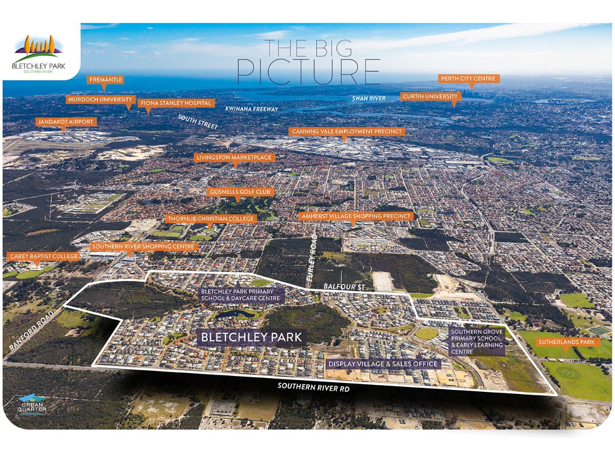 - Away from it all… but still close to everything: Bletchley Park’s location and transport links provide easy access by car (Tonkin Highway, South Street and the Kwinana Freeway are all within easy reach), bus and rail to local work precincts, central Perth and large leisure and shopping facilities across the region.