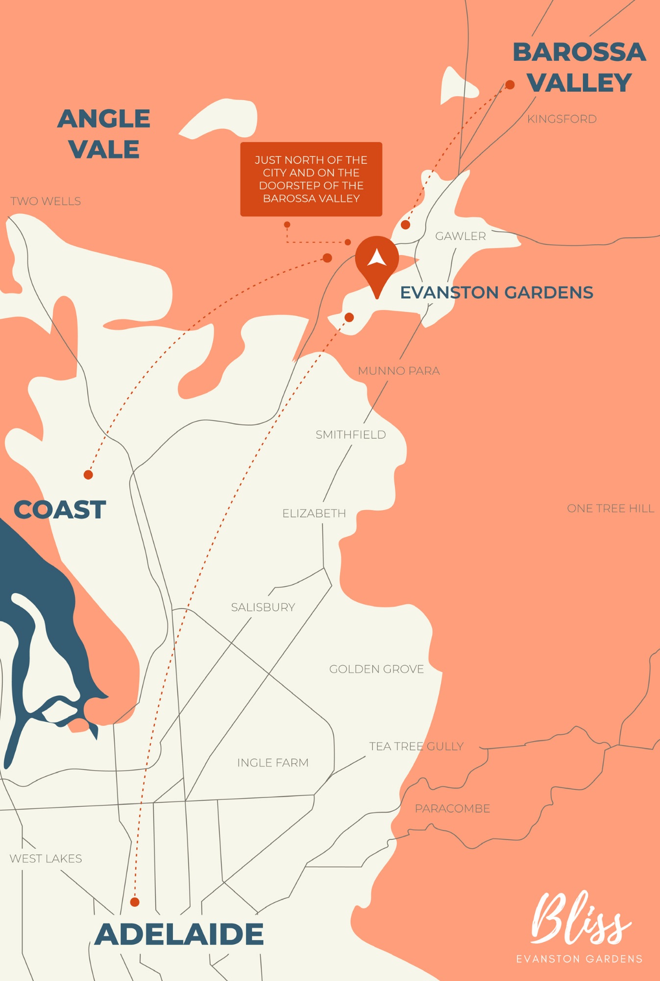 | Distance to | Adelaide CBD - 36 km north Adelaide Airport - 40 km north-east |