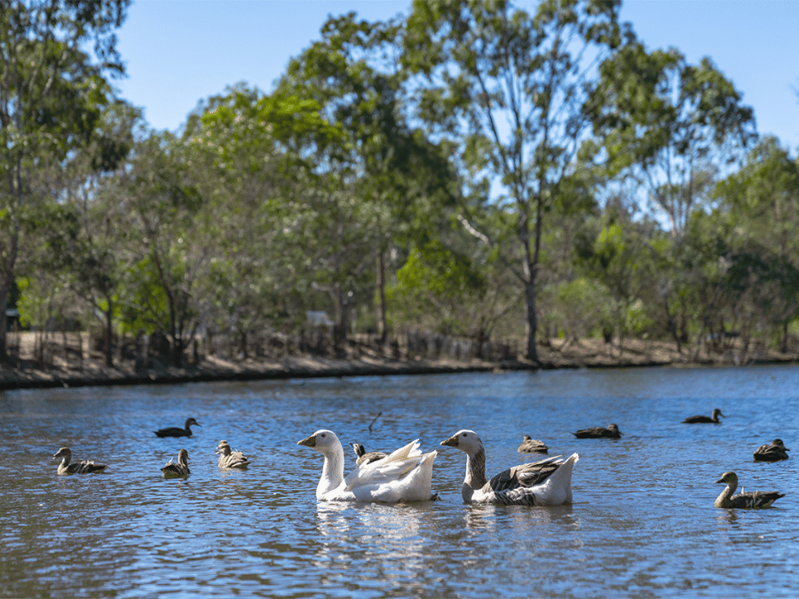 The vegetated waterway corridor of the Burpengary River runs through the centre of the suburb, where it meets the Caboolture River at the eastern wetland area facing Moreton Bay. Burpengary East features retail, supermarket, and business establishments situated at the central Bruce Highway interchange. Recreational areas and natural watercourses dot the landscape, with Freshwater National Park located near the southern boundary.