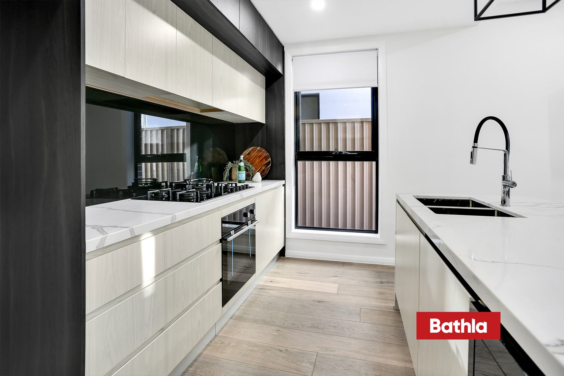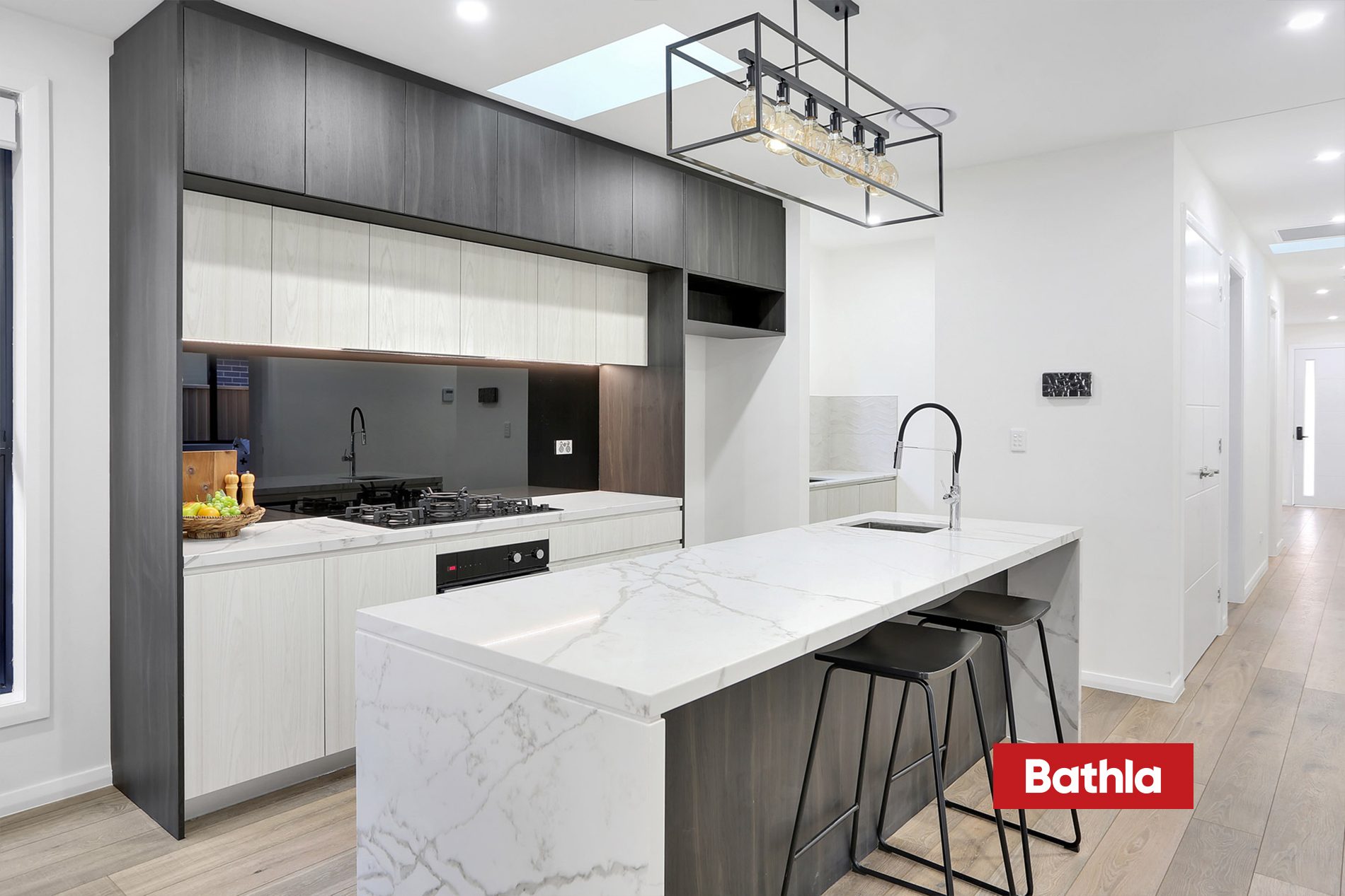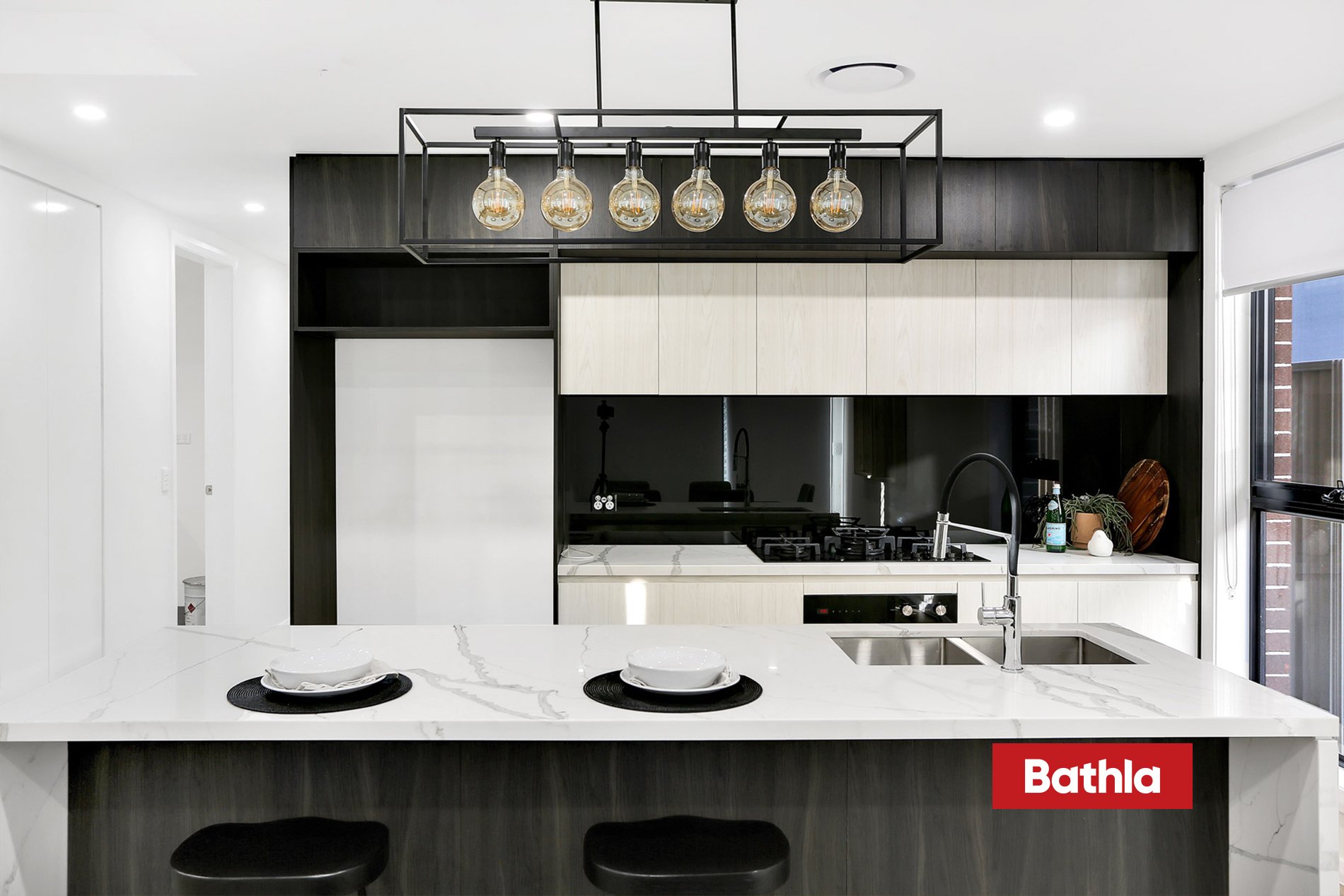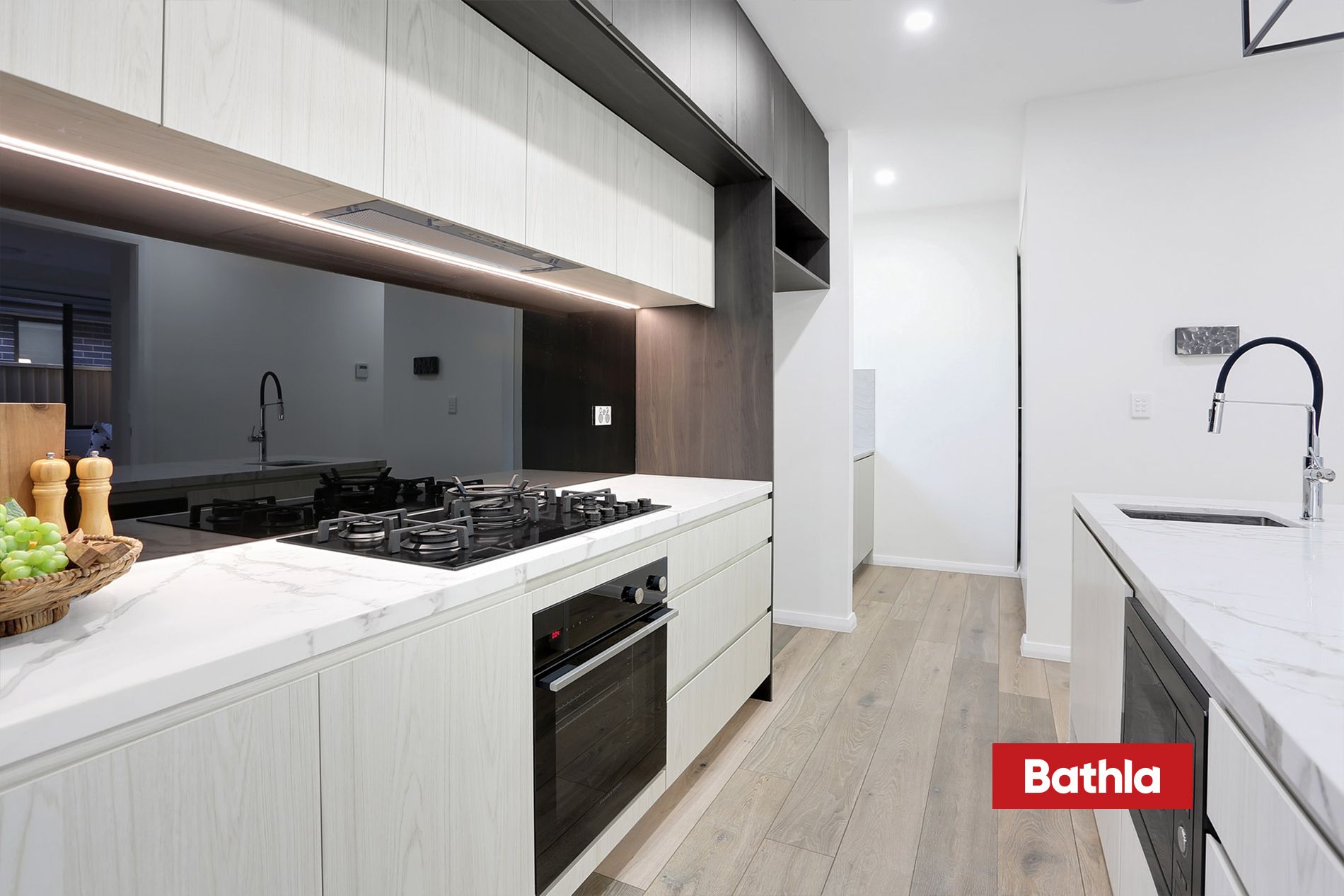 * Gourmet kitchen with 40mm stone bench-tops and gas cooktop