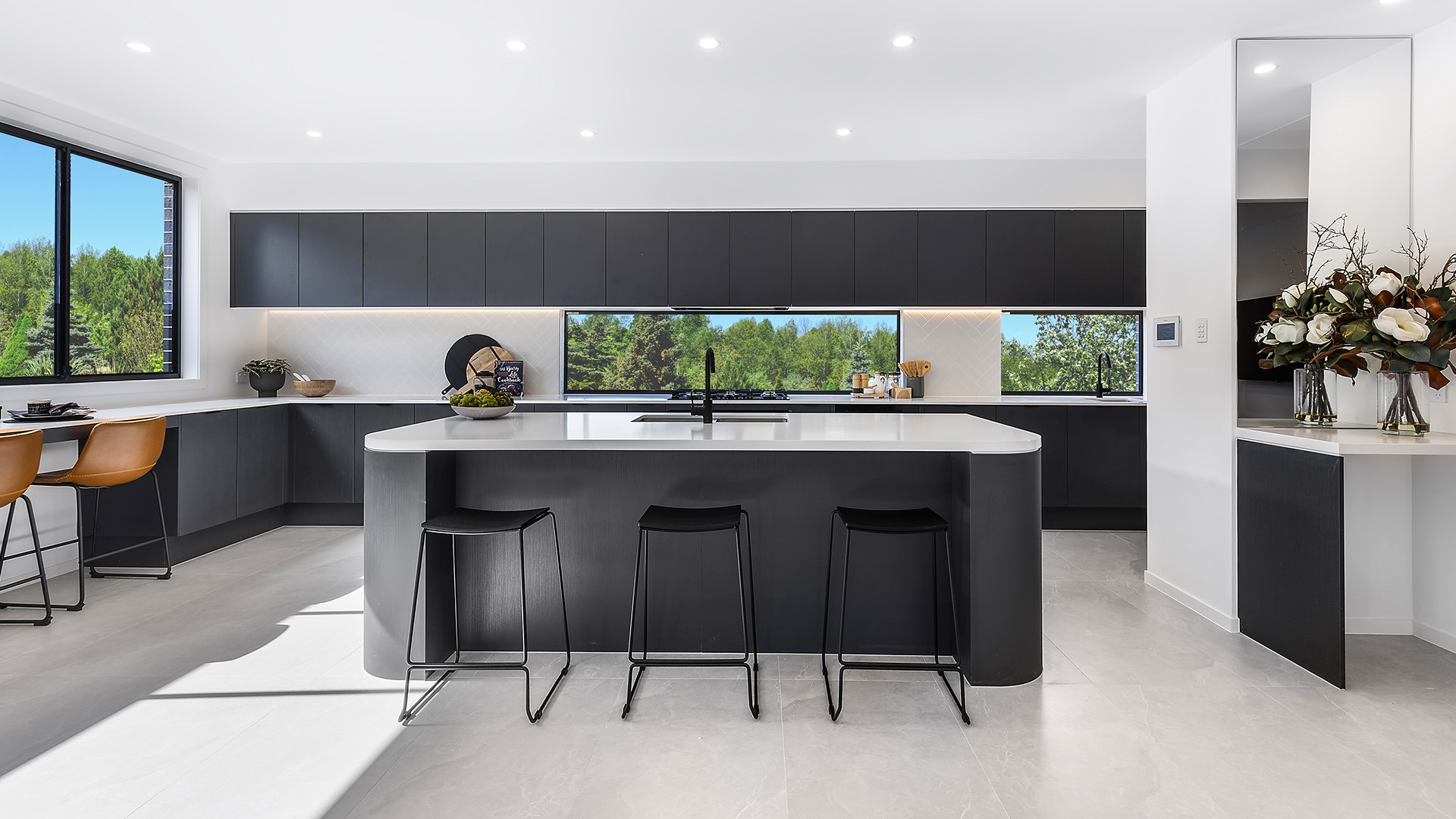 Step into a breath-taking, contemporary design boasting a versatile study, a cosy media room for memorable movie nights, a convenient powder room, and an expansive open-plan family, meals, and kitchen area adorned with an island bench and a generously sized walk-in pantry. Adjacent to this is an attached alfresco dining area, ideal for enjoying meals outdoors in any weather.