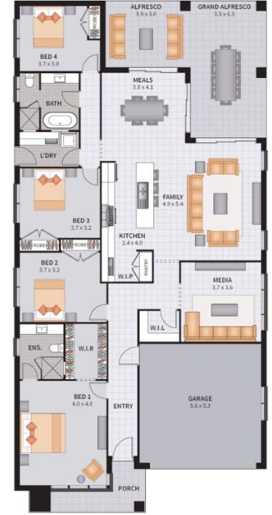 The Carrington Four 27.1 offers four bedrooms with media and a grand alfresco that wraps around off the meals area. Giving you an 'L-shaped' entertaining area.This design is part of our Carrington collection. Have you heard about our Advantage options? With great inclusions like carpet and tiles to your home, it is a fantastic opportunity to pick up plenty of items for your new home.