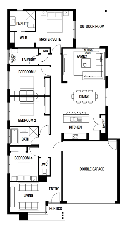 Our most popular home series – The Lloyd, designed for modern day family living! Our Lloyd 29 is not short on space and offers versatility for the growing family. Including 4 large bedrooms, the gorgeous master suite with WIR and ensuite, you’re sure to feel right at home. The crown jewel is without a doubt, the modern open plan kitchen, meals, and family area with two additional separate living spaces. This is a home built for modern open plan living that is innovative living at its best.