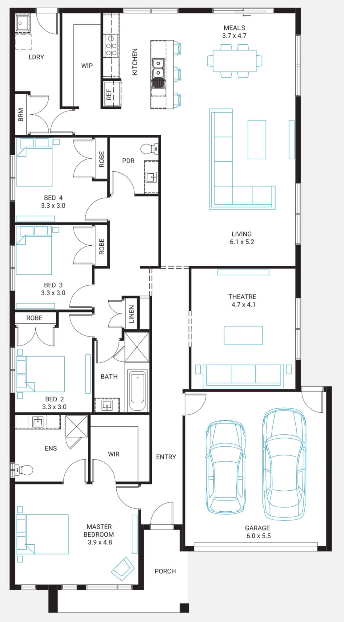 If style and space are what you're after, the Norfolk is the perfect home for you. With a luxurious master suite and home theatre at the front, three additional bedrooms privately sectioned to the side, and expansive L-shaped living space with a zoned kitchen, laundry and walk-in-pantry at the rear, this home is ready for easy-living and entertainment.