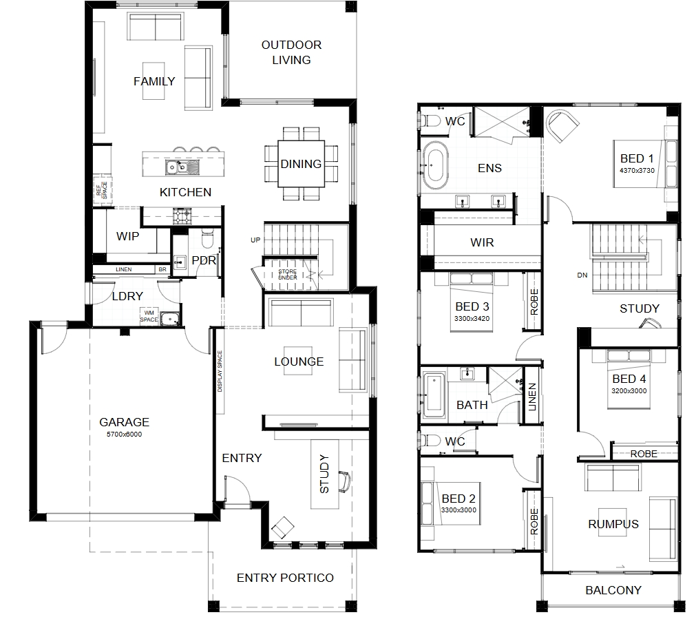 This dazzling 4 bedroom design showcases multiple living spaces ideal for both family fun and private moments, an upstairs rumpus room the kids can call their own, a master suite with a huge walk-in robe, and study areas on both levels. At the heart of it all, the entertainer’s kitchen is the hub around which the dining room, family room and outdoor living area are gathered. Contact us today to customise the Lennox home to you!