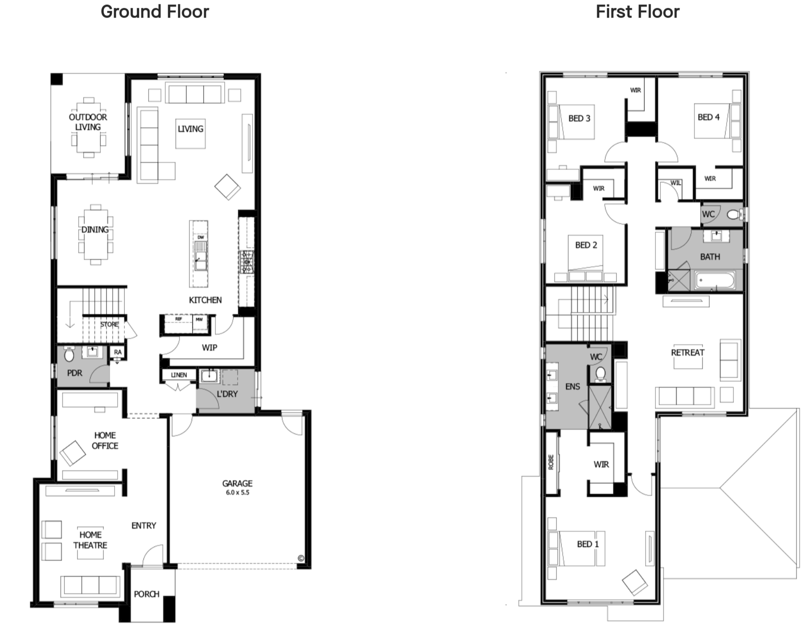 The entry hall opens onto a generous home theatre while a separate office provides a sanctuary for work and study. Access from the double garage creates a discreet service zone tucked behind the main thoroughfare – including a powder room, laundry and walk-through butler’s pantry.