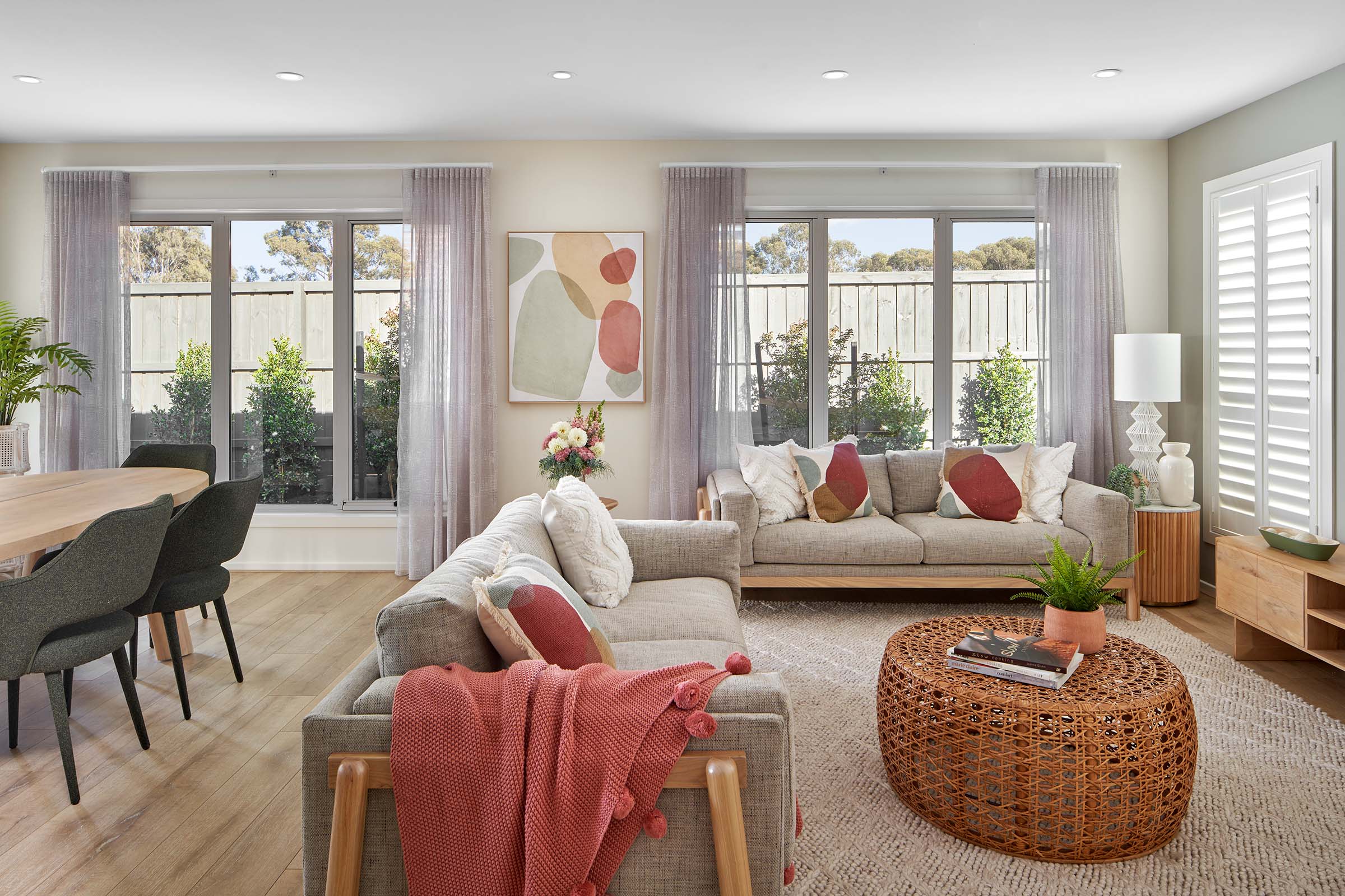 The stacked layout of the living spaces at the rear of the home invites an abundance of natural light.