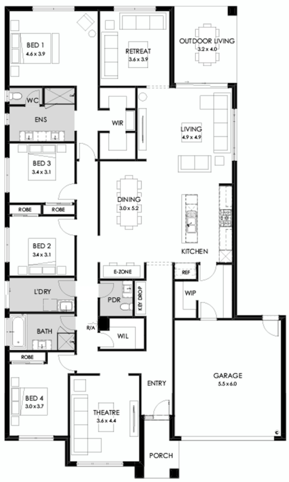 Havana also makes it delightfully easy to watch movies or sporting matches in the home theatre, or lounge cosily in the separate retreat at the back of the home. The gourmet kitchen features an island bench and handy garage access through the walk-in pantry. From here, the open-plan living and dining extends to an outdoor living area.