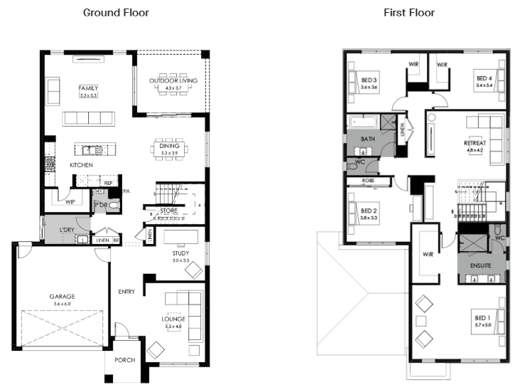 The Montpellier is a functional design, with four bedrooms and multiple living areas spread over two storeys. A lounge near the entry offers a secluded space to unwind away from more hectic entertaining activities, while a spacious home office encourages studying or working from home. The double garage opens to a convenient key-drop alcove.