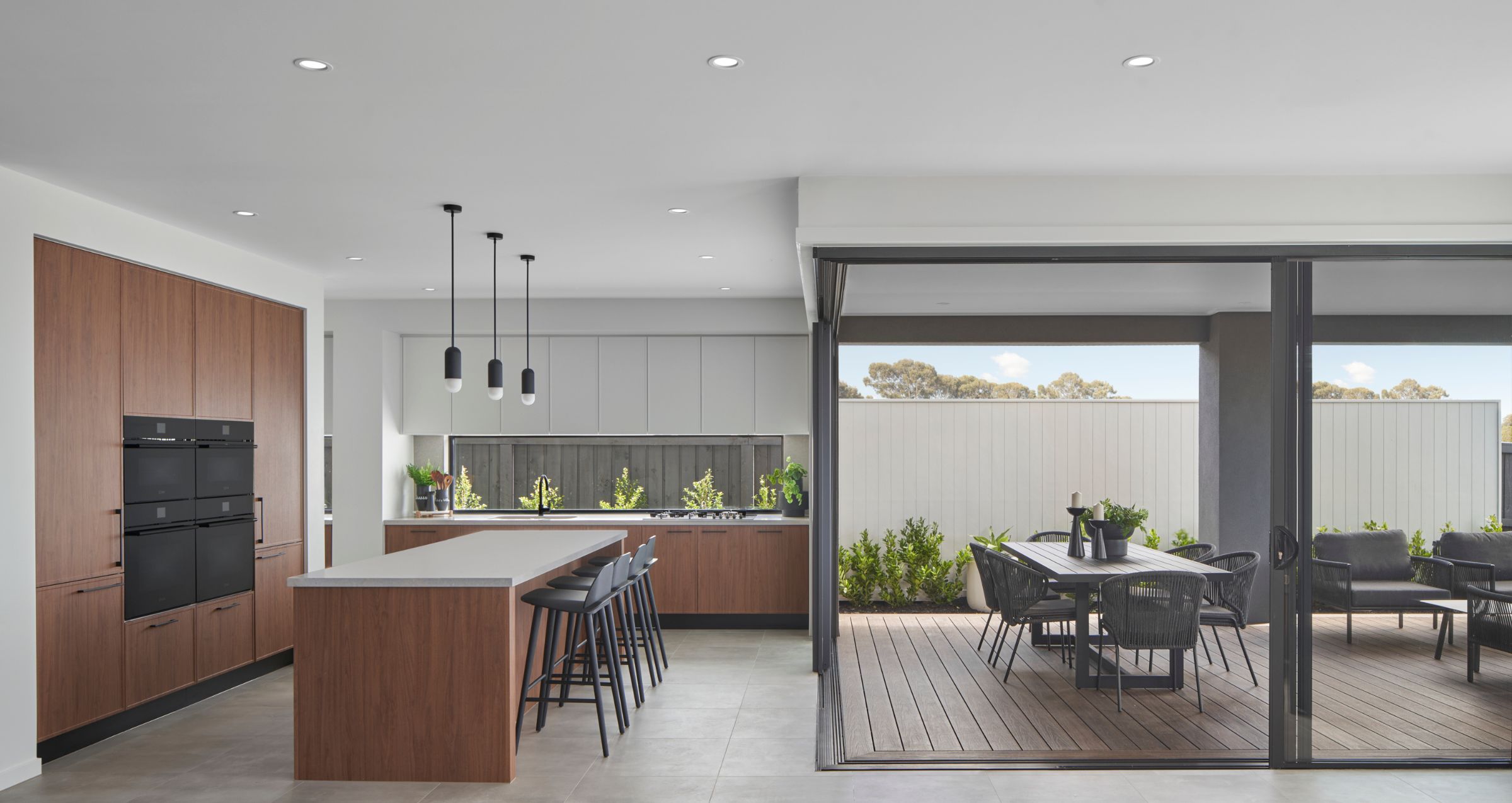 Overlooking the undercover outdoor living area is a wrap-around open-plan living and dining space – take it all in from centrally located gourmet kitchen, whose impressive layout includes a large walk-in pantry and versatile island bench.