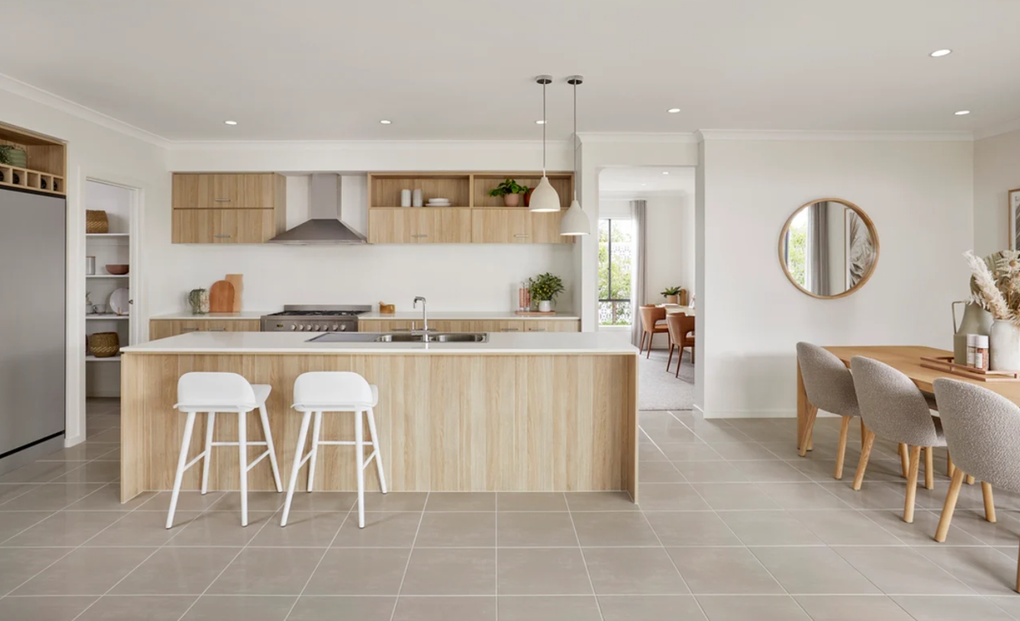 Central kitchen, meals and living area flowing out to the covered alfresco