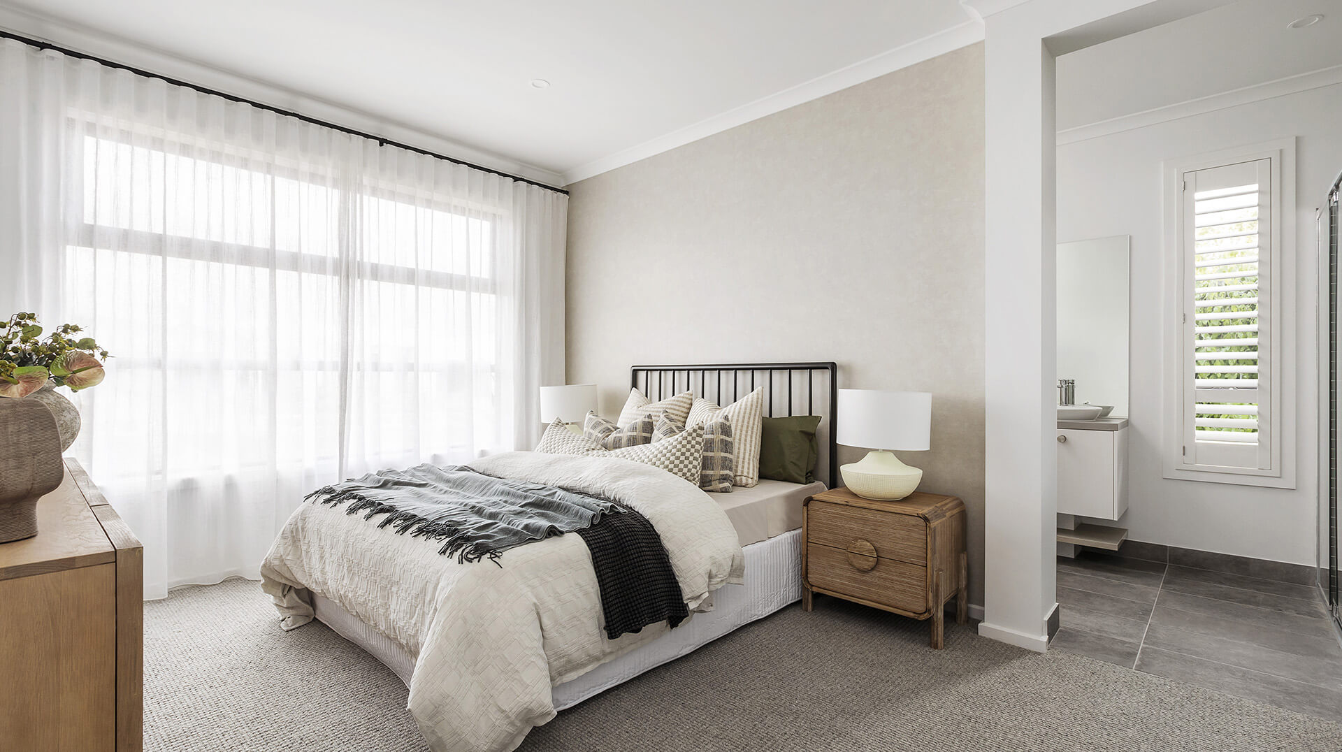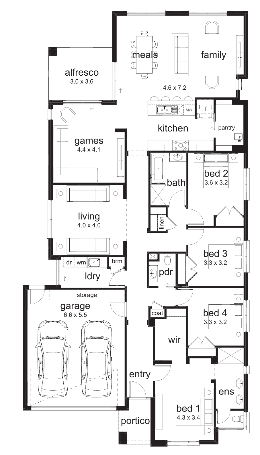 Choose between two floorplans when you build the Alexandra. With the option to have a three, four or five-bedroom home the possibilities are endless. The spacious home opens with a lovely master suite, continuing with the remaining bedrooms along one side of the house. An open-plan kitchen, meals and family area completes this versatile design.