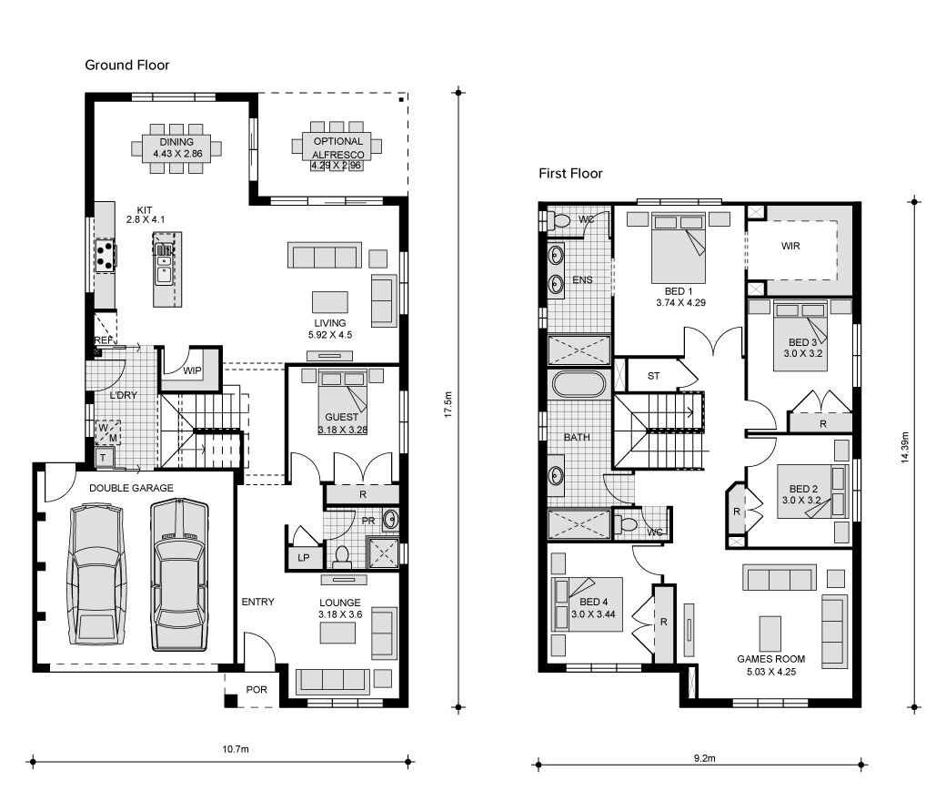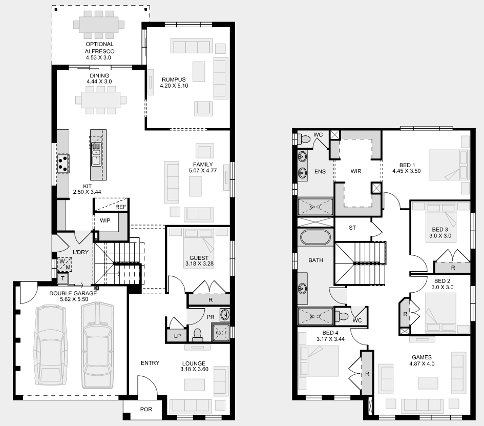 The Savoy is a stylish double-storey home featuring 4 bedrooms, an open-plan kitchen, dining, and family areas downstairs, plus a games room upstairs. With its contemporary design and functional layout, it offers spacious and comfortable living for modern families.