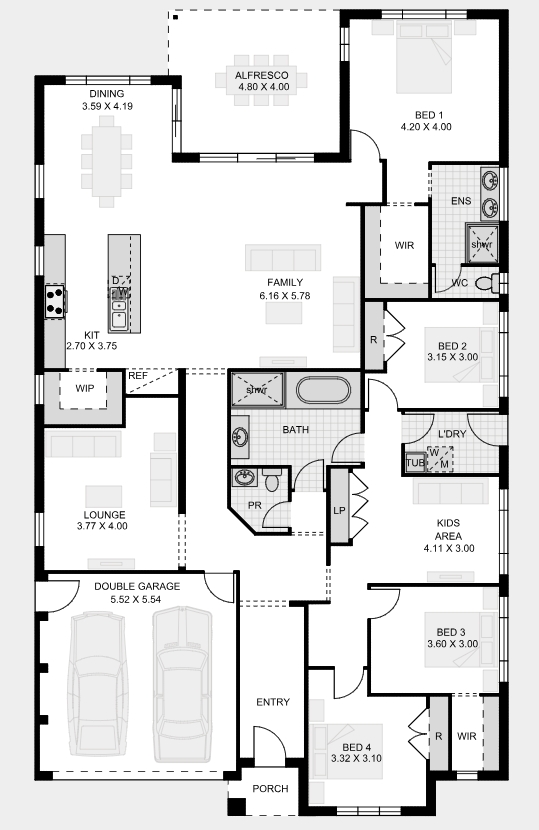 The Glenburn is one of our most popular single storey designs and it’s easy to see why. Featuring 4 bedrooms, an open plan living area with an alfresco perfect for indoor outdoor living and a designated kids area, it’s designed for families to live and grow in.
