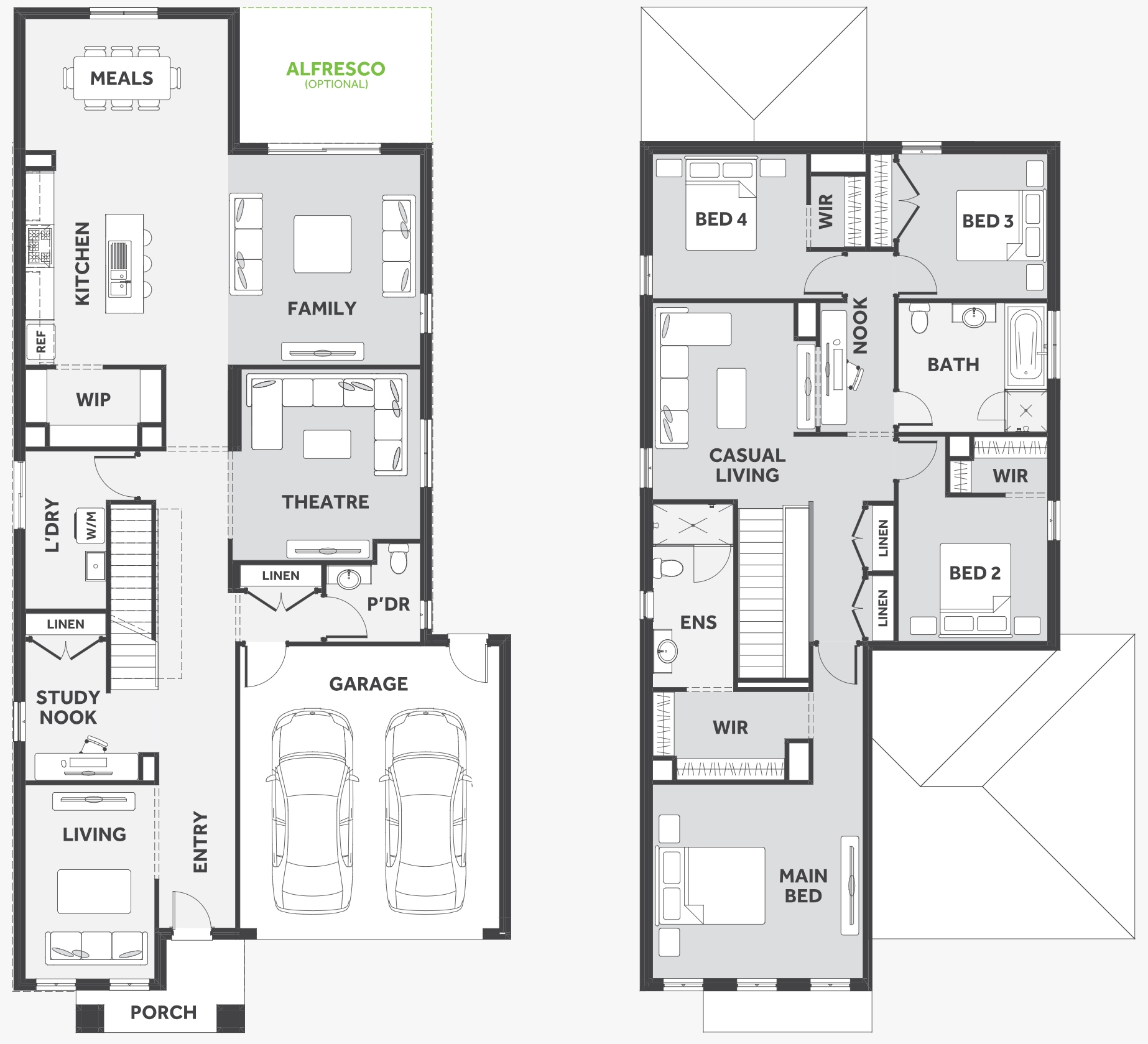The impressive entry of the d FIVE range flows into an open family and meals area. The contemporary kitchen is fit for any master chef with an adjoining walk-in pantry, while the guest bedroom to the ground floor is complete with an expansive walk-in robe and ensuite. With five generous bedrooms, including a vast master suite, the d FIVE makes the perfect family home.