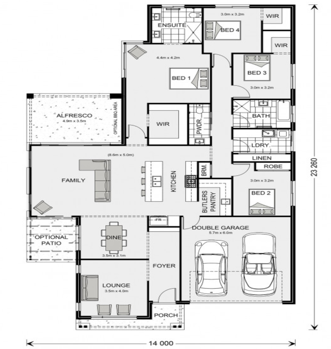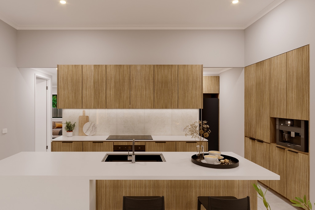 Entering the home, the foyer draws you to the centre of the home to a welcoming open plan living space comprising a kitchen and butler’s pantry with dining and family spaces flowing between the rear alfresco and an optional front patio providing effortless connections to the outdoors.