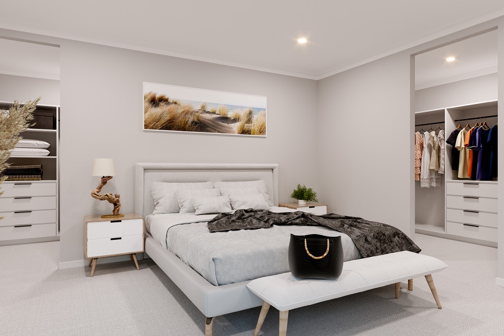 Private spaces inclusive of bedrooms and bathrooms are located at the back of the home, and cleverly designed to maintain good separation between the kids’ zone and the parent’s master suite, that hosts a well-appointed ensuite and a large walk-in robe.