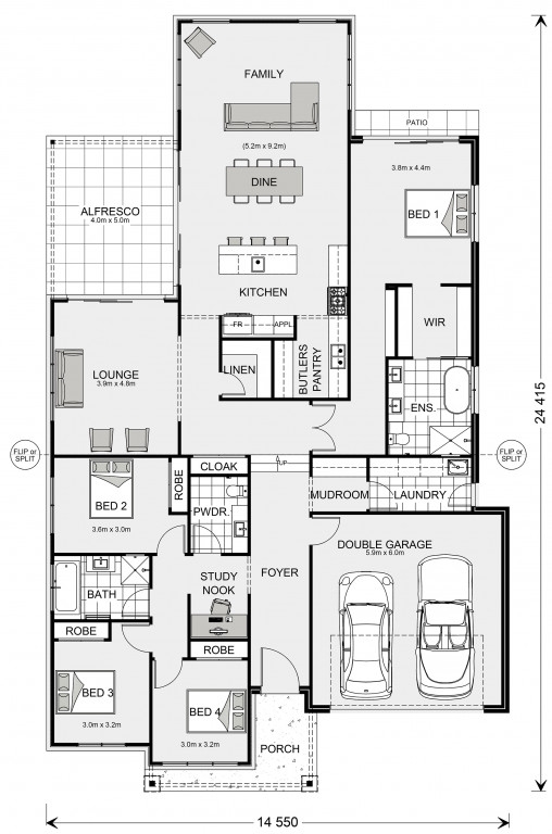 A spacious master suite to the rear with doors that open to the outdoors, kids’ zone to the front with a study, and a separate lounge room adjoining the alfresco that extend the family living areas for all year-round enjoyment, are some of the highlights the Hawkesbury design has to offer.