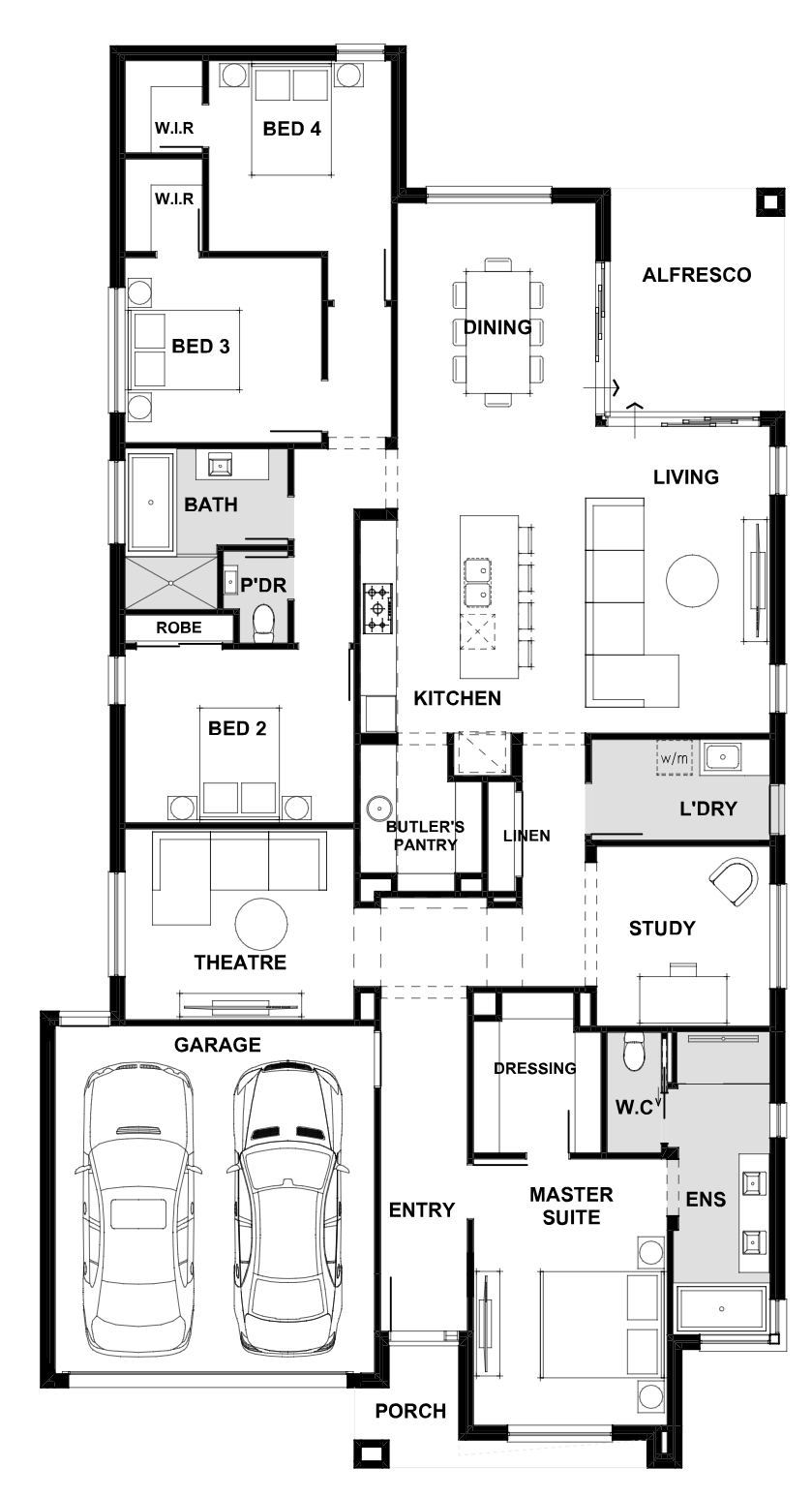 Living is easy in this design with its sprawling entertaining spaces flowing all the way through to the alfresco area.