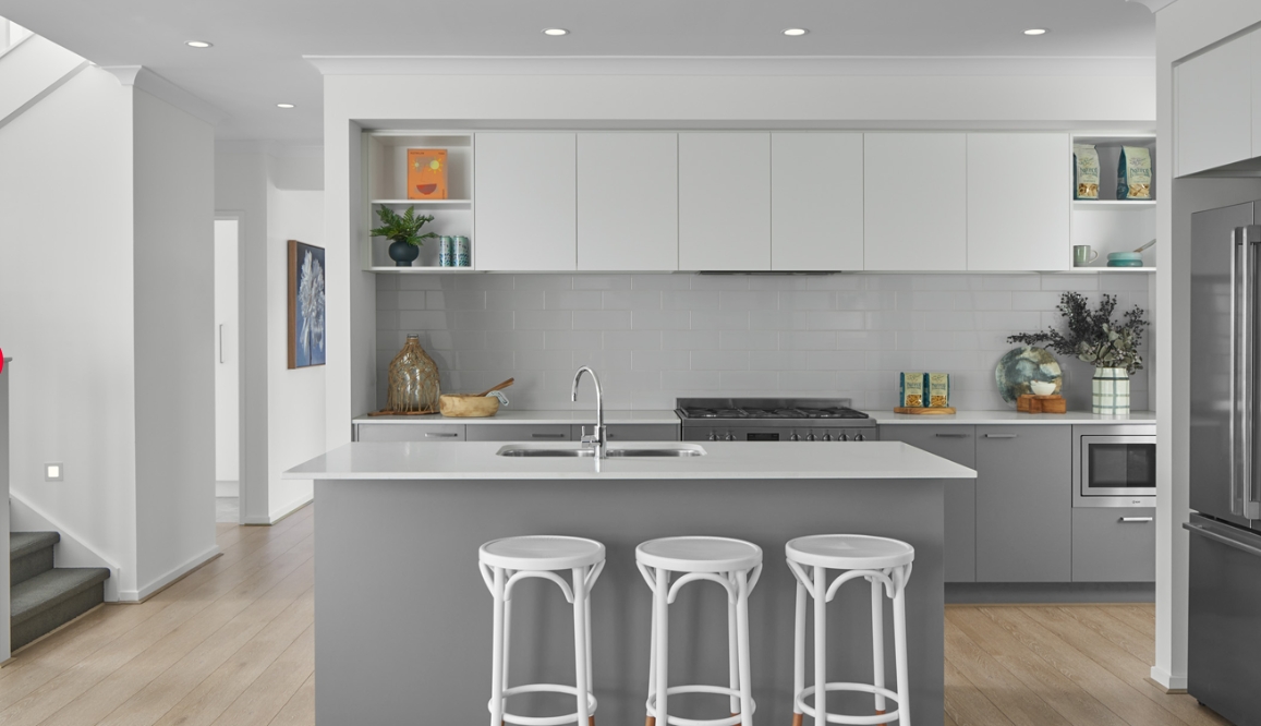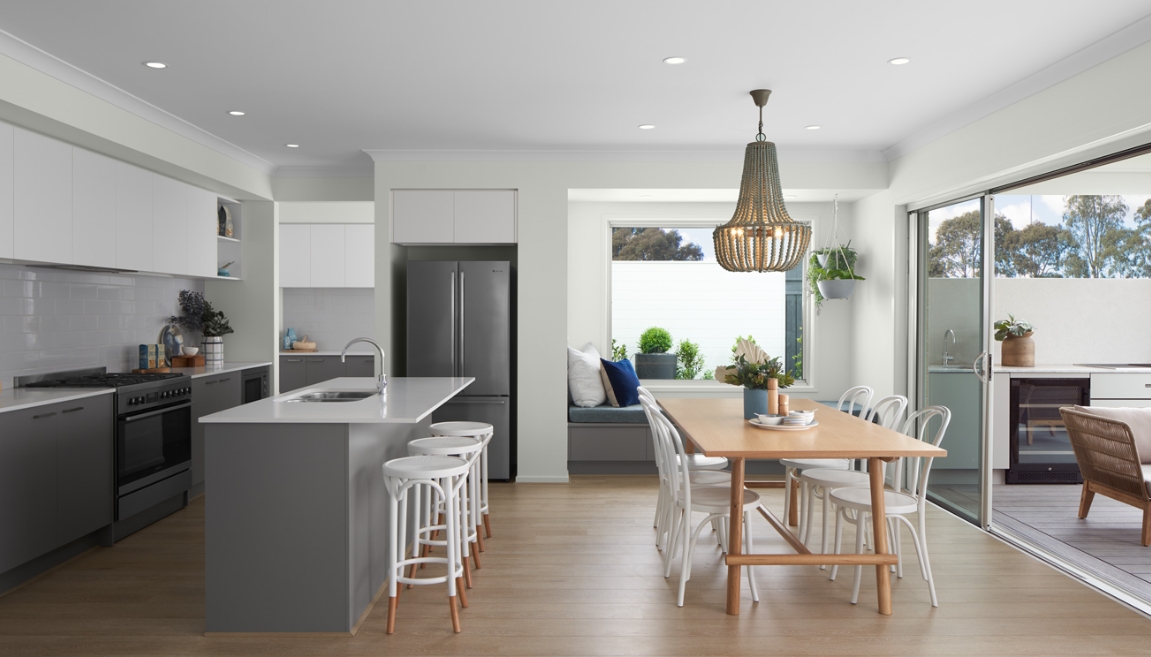 Downstairs you will be greeted with the versatile lounge room and past the laundry and powder room, you will be welcomed by the expansive open plan living area. The open plan kitchen boasts a generous walk-in pantry and impressive island bench, perfect for entertaining guests. We have also introduced an e-zone into the dining space which can be converted into an at-home bar.