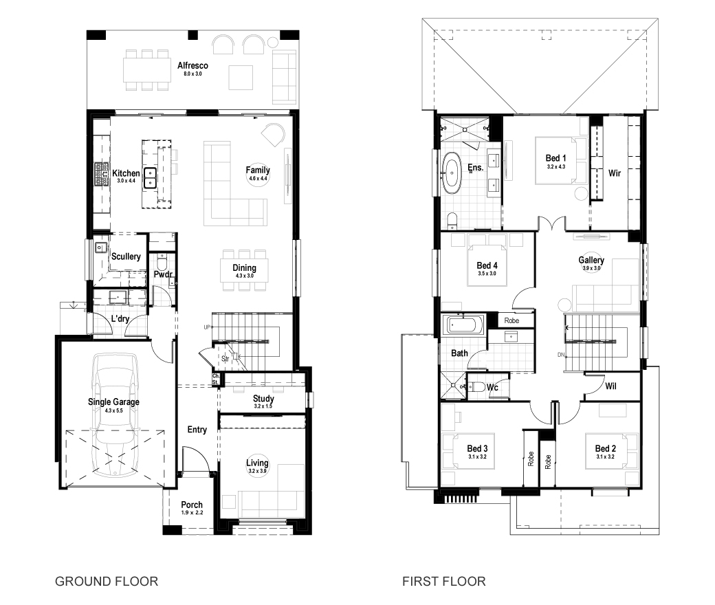 The Emerald proudly makes the most of natural light with windows throughout the entire home, from the void entry, to the staircase well. This two-storey design is an entertainer’s delight with a formal living area, media room or home theatre, open plan living-kitchen area leading out to the alfresco and a scullery that would make any neighbour jealous.