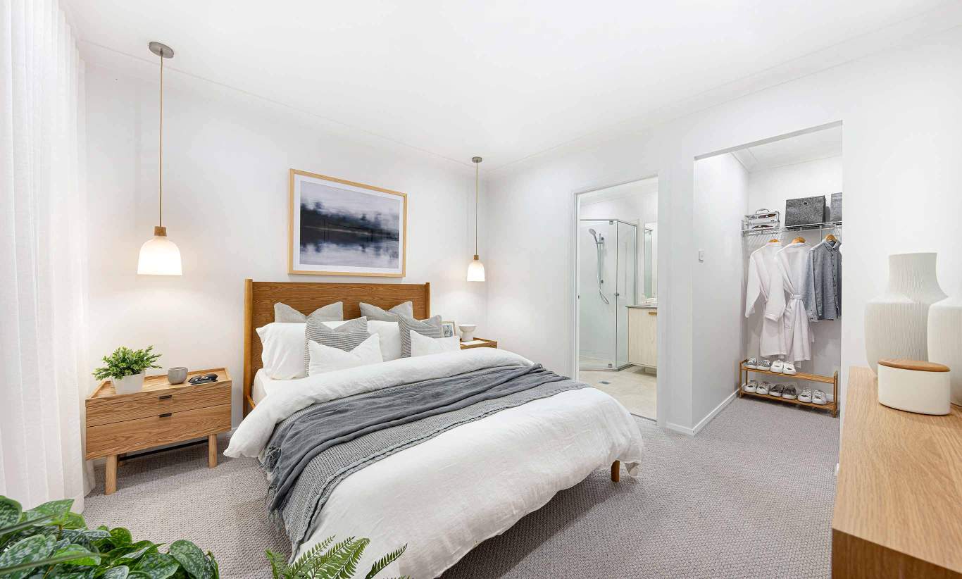 The light-filled master suite with ensuite and walk-in robe is the perfect place to enjoy some moments of peace away from the busy family living spaces.