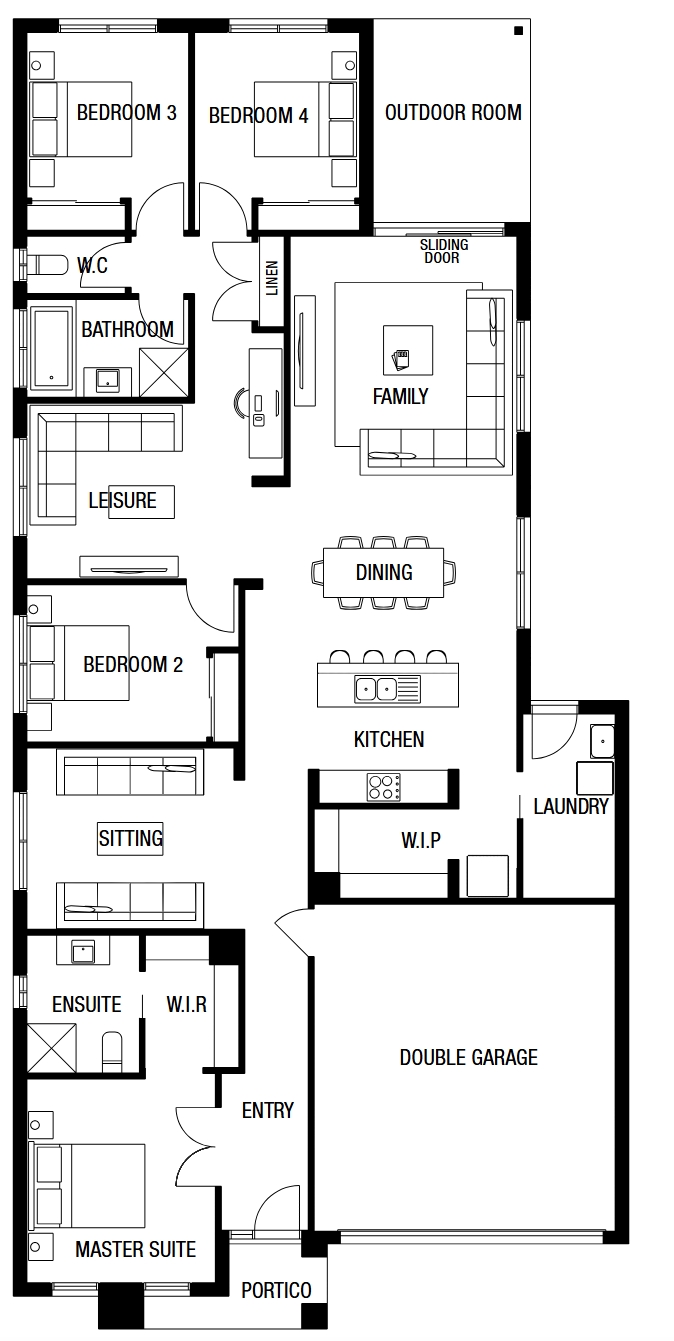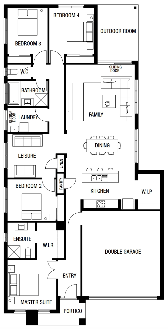 This fantastic home design is perfect for a large or growing family. With four bedrooms, all of which feature built in robes, along with plenty of space for entertaining, this great design will appeal to all home buyers. The master bedroom features a walk-in-robe and an ensuite bathroom. The centrally located contemporary kitchen, dining and family rooms provides plenty of space, however, the addition of a separate leisure room means no one in the family will ever be bored. The home is also blessed with a double garage to complete the abundance of space provided in the Kyton.