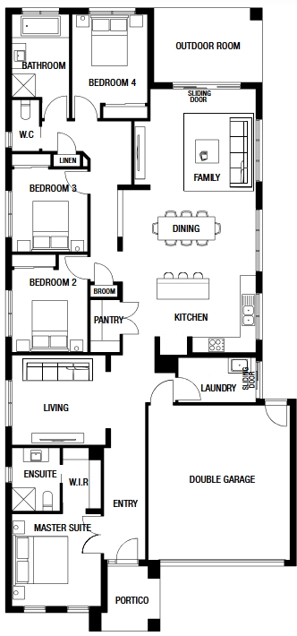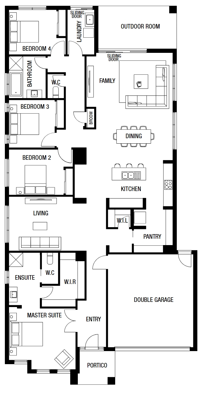 Now available with a wide selection of flexible floorplans, the Delta has been cleverly designed for a growing family with its bedrooms located along one side of the home, providing an open plan layout with living areas on the other. The focal point of this unique home is the integrated living areas, complemented by a fabulous kitchen.