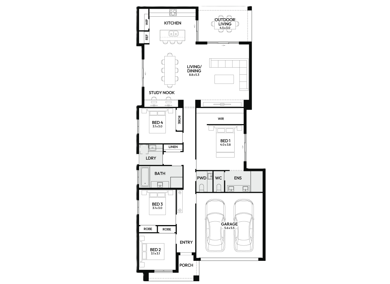 Enjoy seamless indoor-outdoor living with the living area opening onto an inviting outdoor space. This four-bedroom home offers built-in robes in each room, ensuring ample storage. The main bedroom boasts a double bowl ensuite and a spacious walk-in robe for added luxury.