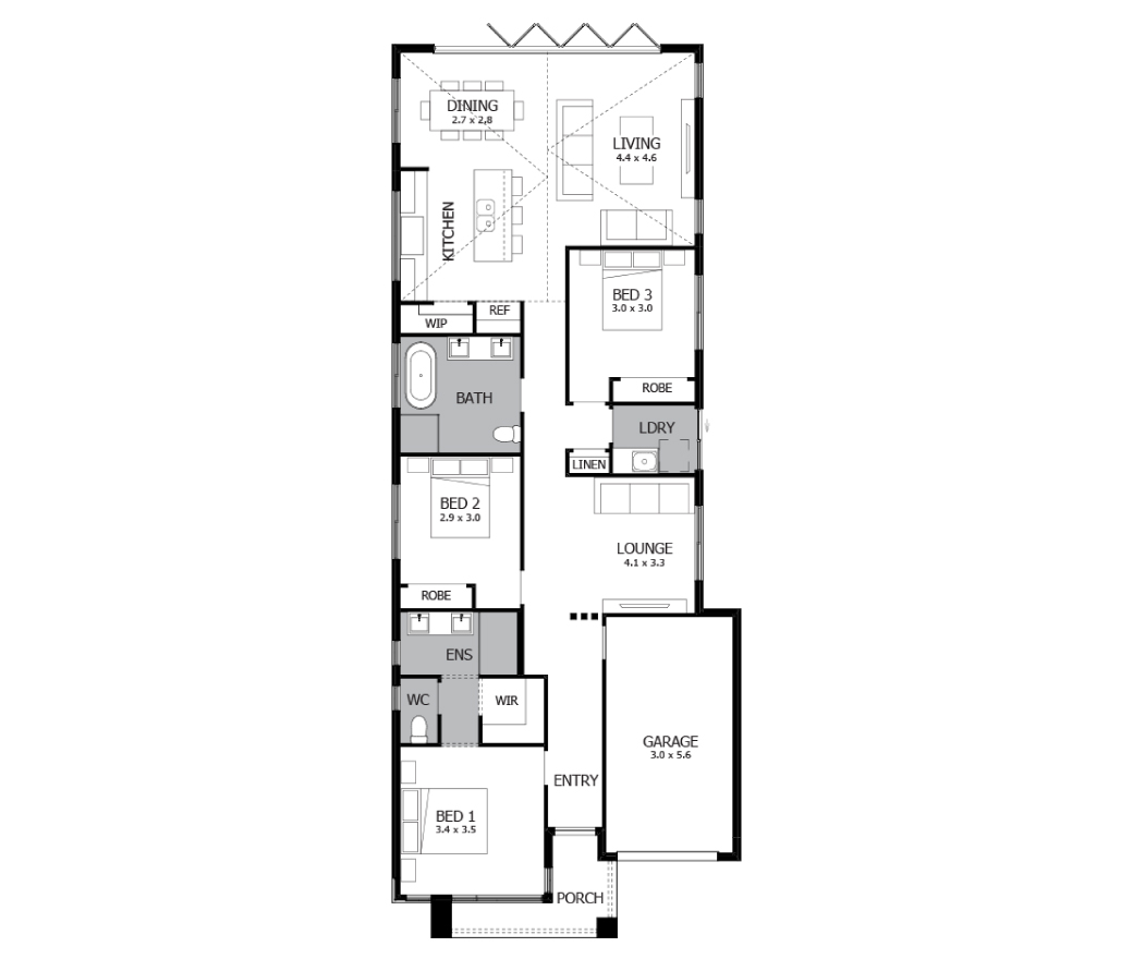 The Alpha 17 is a Single storey home designed for smaller blocks and is perfect for First Home Buyers or those wanting to downsize without sacrificing quality and lifestyle. A slightly smaller version of the Alpha 18, this home is practical yet spacious – a perfect solution for comfortable living.