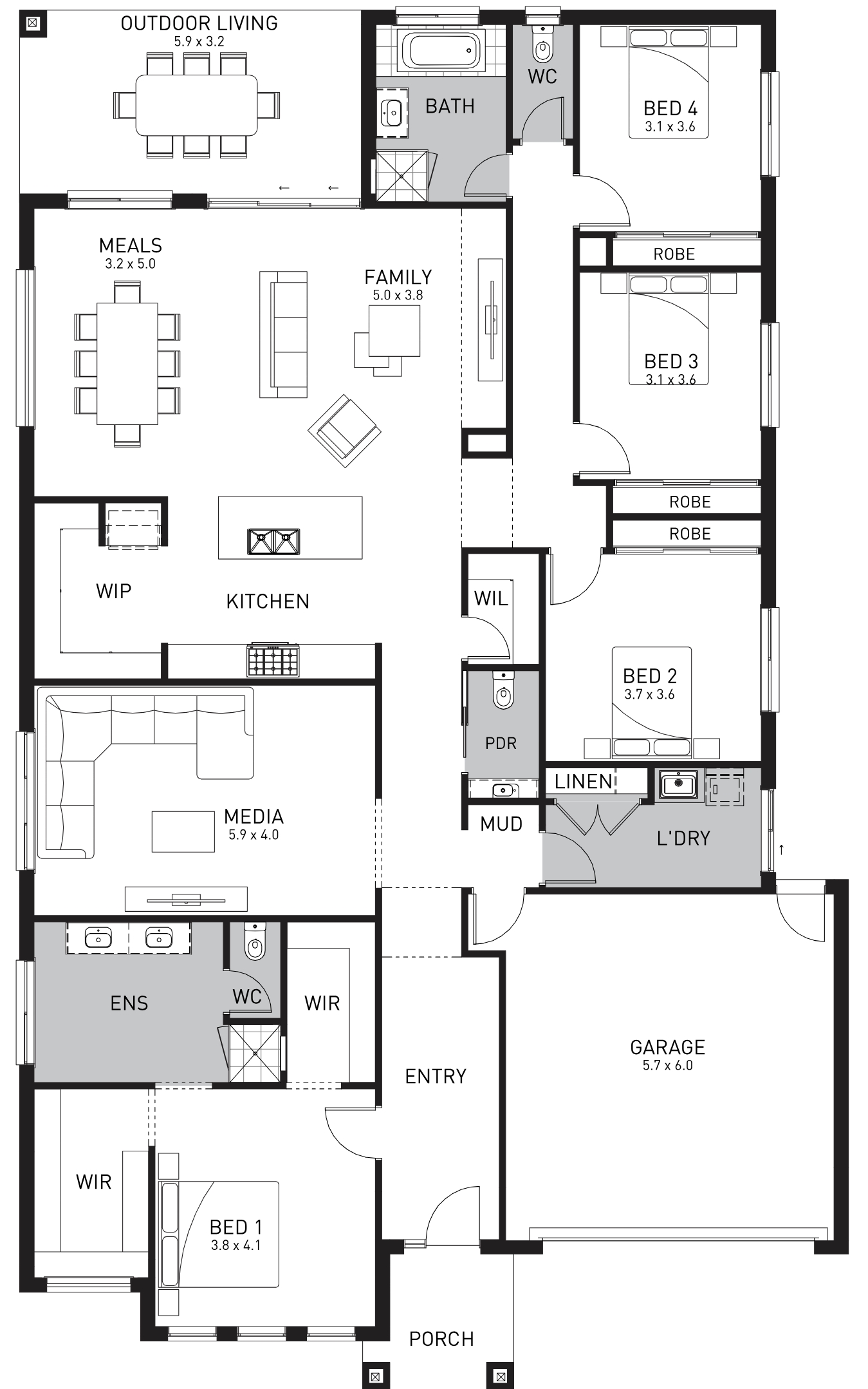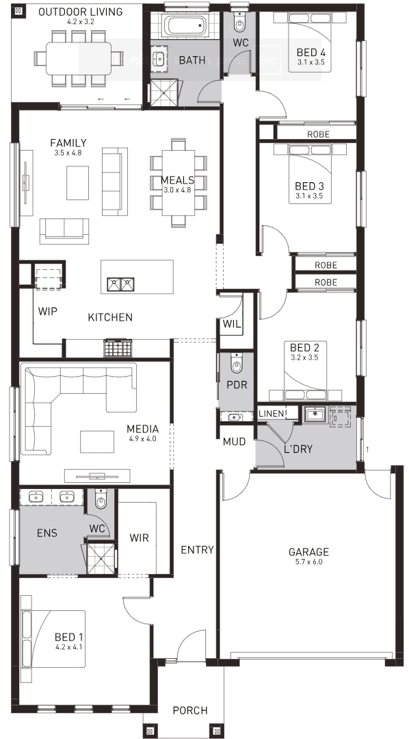 Chevron is expansive in size, style and sophistication. Space is key here, with dual living areas and a lavish open-living family, meals and kitchen area. Details such as butler’s pantry and ample storage lift this home above others. Four large bedrooms are complemented by three bathrooms plus a powder room and create abundant space for all family members to find privacy, rest and relax. His and hers walk in robes complete the master bedroom, while a luxury ensuite with freestanding bath and a separate WC creates a touch of luxury for parents.