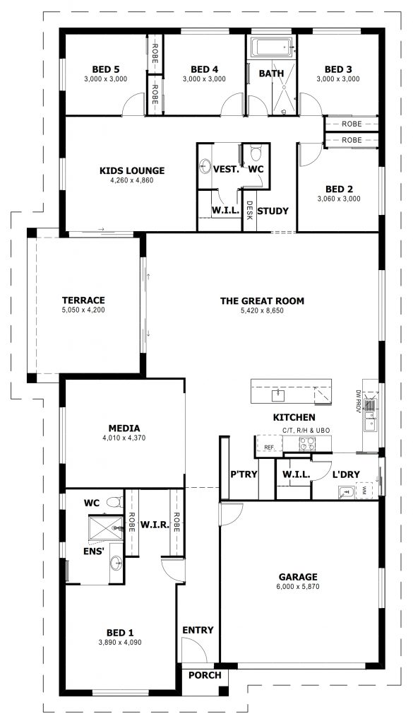 The Sirocco is the ultimate family home featuring four or five large bedrooms with luxurious ensuite and walk-in robes off the spacious master bedroom. This design also features a separate media room with two of the designs providing an additional powder room. Designed with the children of the house in mind, the layout ensures they have their own space, offering large bedrooms with their own bathroom and kids’ lounge.