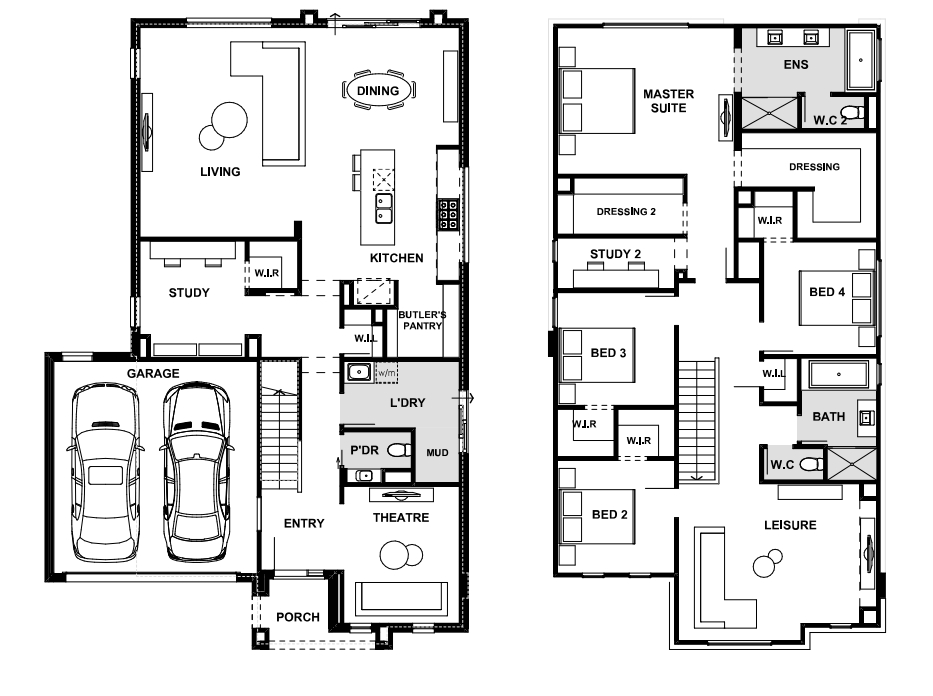 The build-over garage design elevates the marvellous master to rear suite, boasting a double dressing and spacious ensuite for unrivalled luxury
