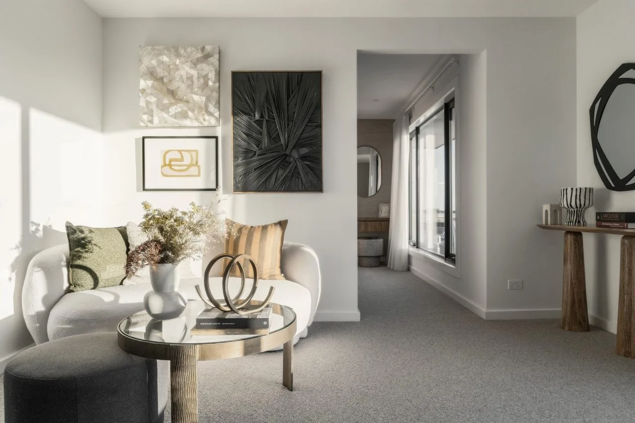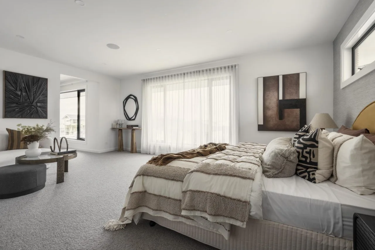 Step into the epitome of minimalist luxury with Bellaire, featuring four distinct living spaces. The master suite, complete with an impressive dressing room, offers a private retreat within the home. At its core is a well-appointed kitchen and spacious walk-in pantry, blending functionality and style. A strategically placed powder room off the main living area adds convenience for guests while keeping the private bedroom zones upstairs undisturbed