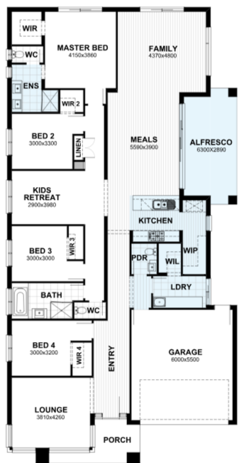 Perfect for growing families, the Rosedale 29 uses strategically zoned living spaces, designed for multi-use dwelling with comfort in mind. The open plan kitchen, meals and living is the central hub of the home.