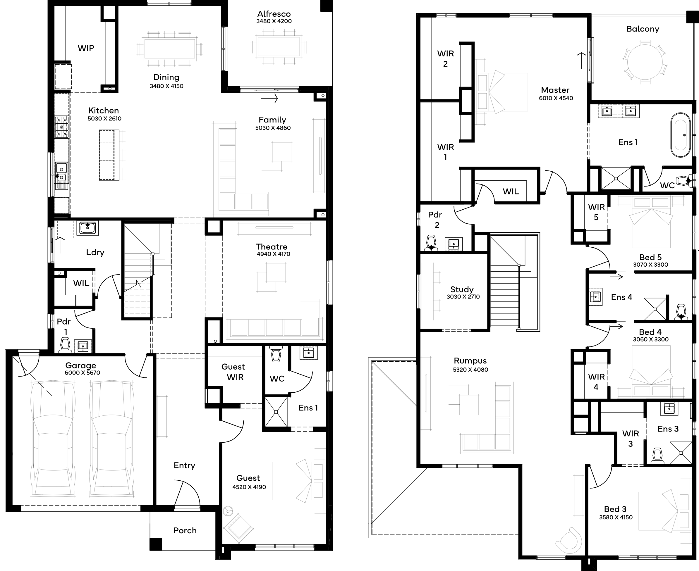 Suited for 15m+ blocks, the Tallowood 52 includes 5 bedrooms, 4 bathrooms, and a 2-car garage over two floors. It offers a parents' retreat resembling apartment-style living with large walk-in robes and a private balcony. Downstairs, the floor plan includes guest accommodation and a home theatre, complementing the spacious open-plan kitchen, living, and dining area. This home seamlessly combines modern living with comfort and privacy.