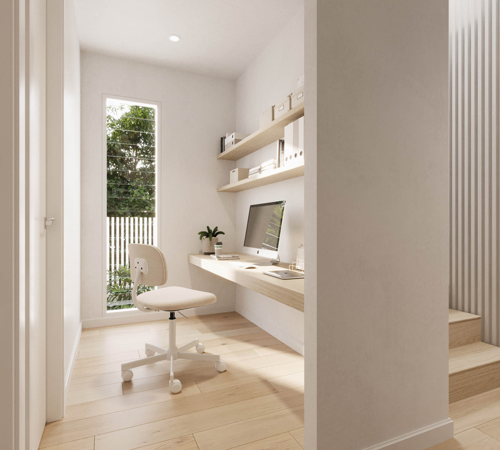 The floorplan boasts three contemporary bathrooms, two of which are ensuites for the master and second bedrooms. A convenient powder room graces the ground floor, along with a private study ideal for a work-from-home lifestyle.