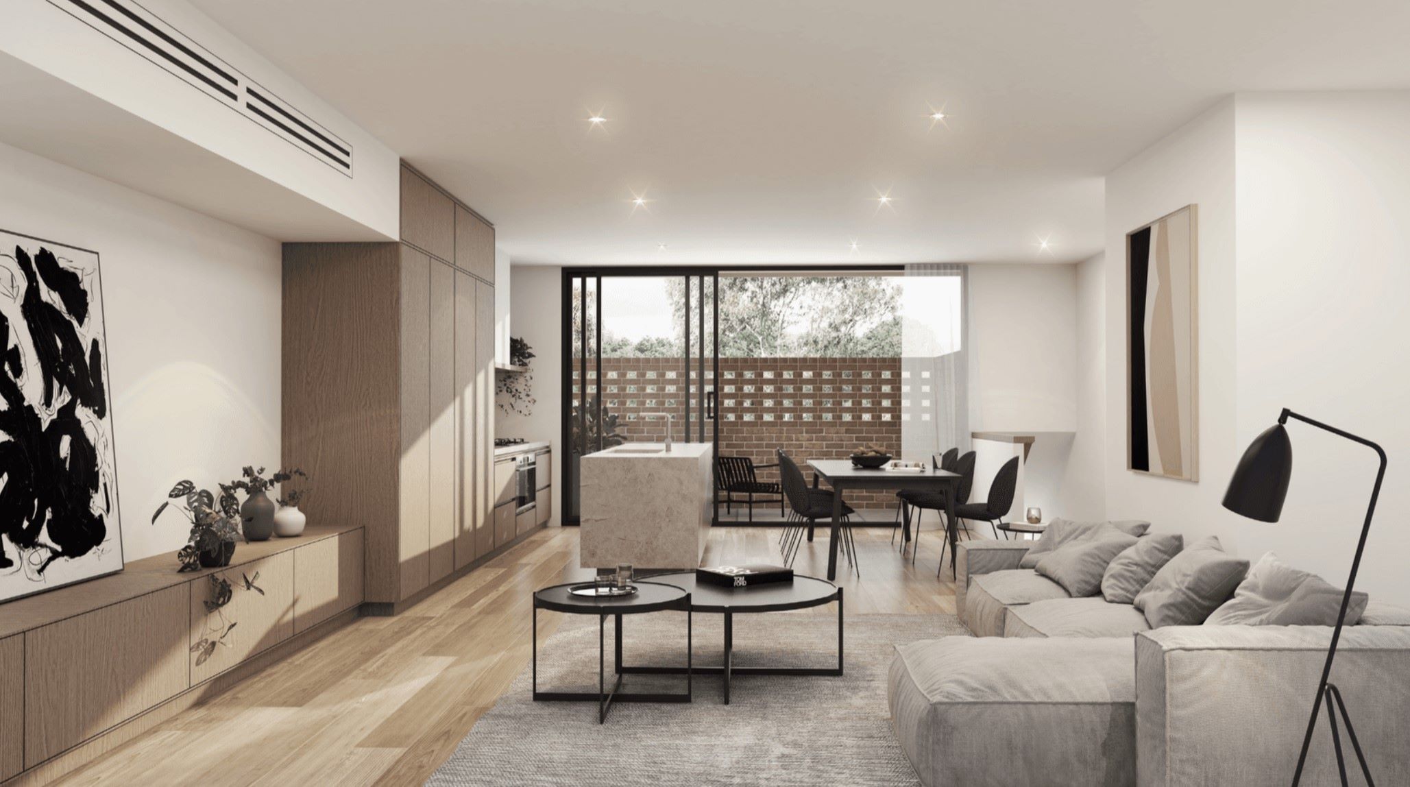 Open plan living, ample storage and warm materials ensure an inviting space for entertaining and everyday life. Premium stone tops, European engineered timber flooring and stainless-steel Bosch appliances offer a luxurious touch.