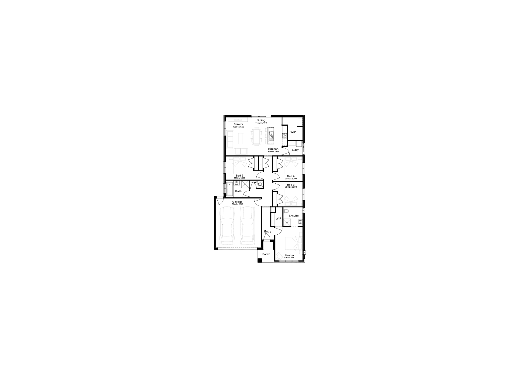 Introducing the Grampian 19 – featuring 4 bedrooms and 2 bathrooms, complemented by a 2-car garage, and captures the essence of modern urban living. The front of the single-storey home houses a luxurious master suite, providing a private sanctuary. The heart of the home is the expansive living area at the rear, bathed in natural light, offering a versatile space for relaxation and entertainment. The contemporary kitchen, centrally located in the floor plan, is perfect for hosting or enjoying quiet moments.