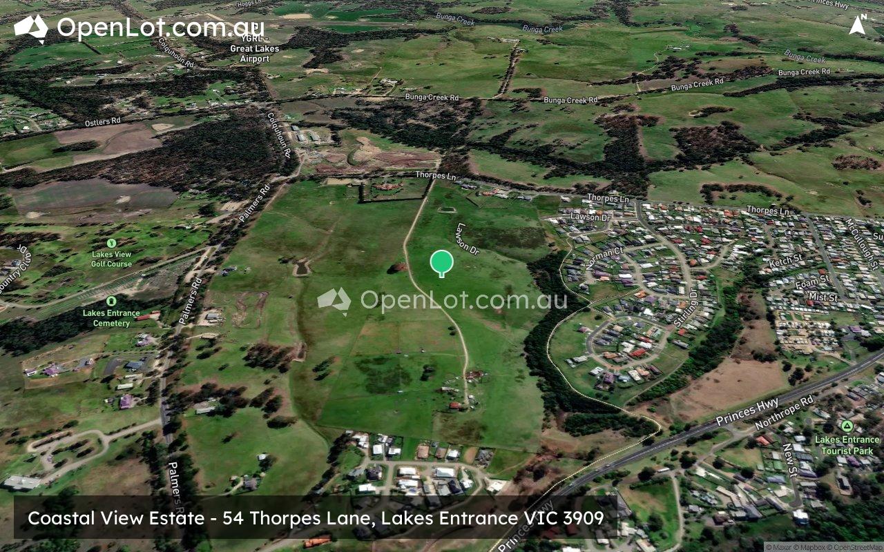 Location & Map for Coastal View Estate - Lakes Entrance