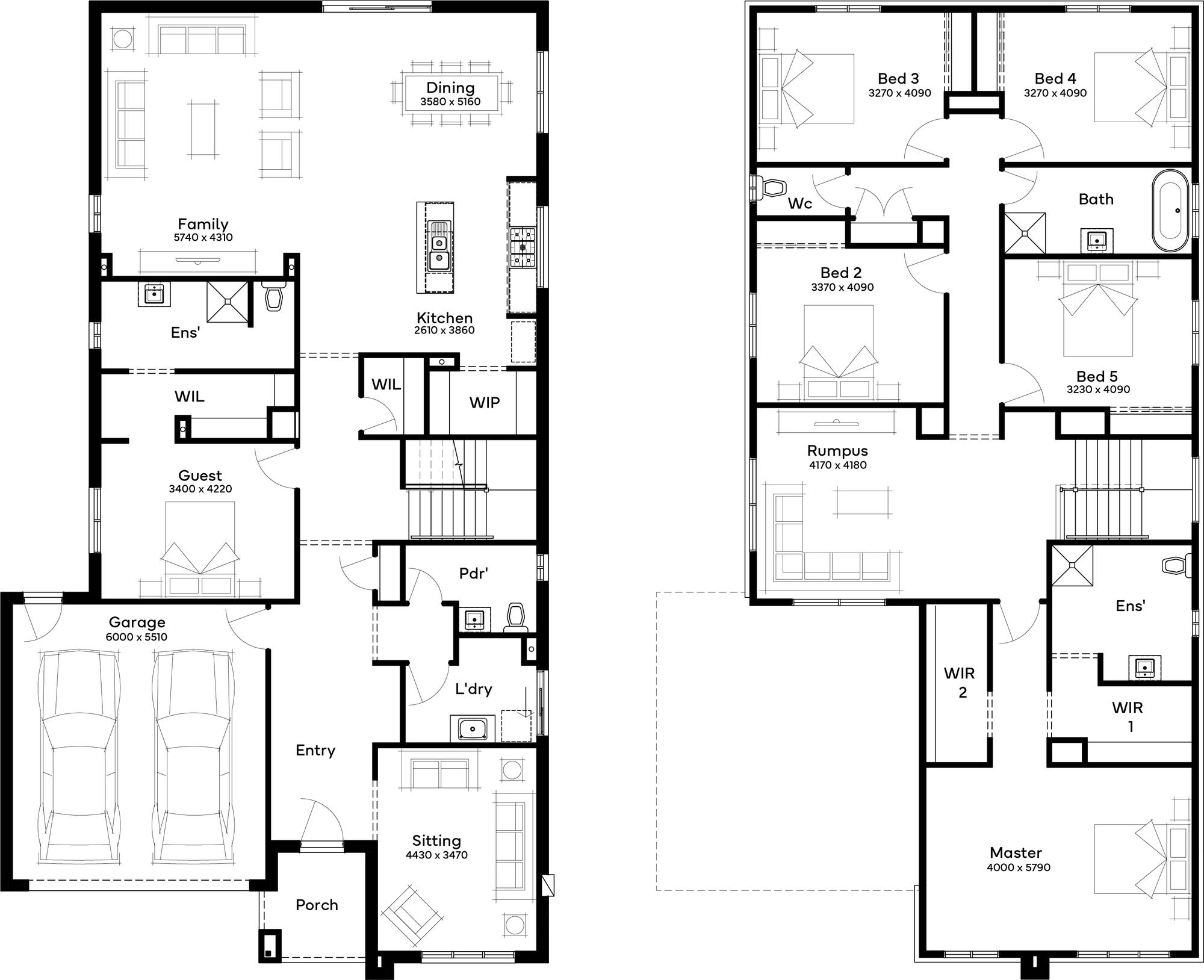 A house design tailored for family living with six bedrooms and multiple living spaces.