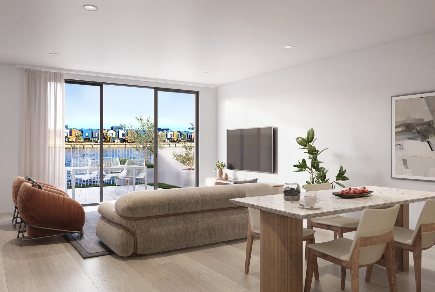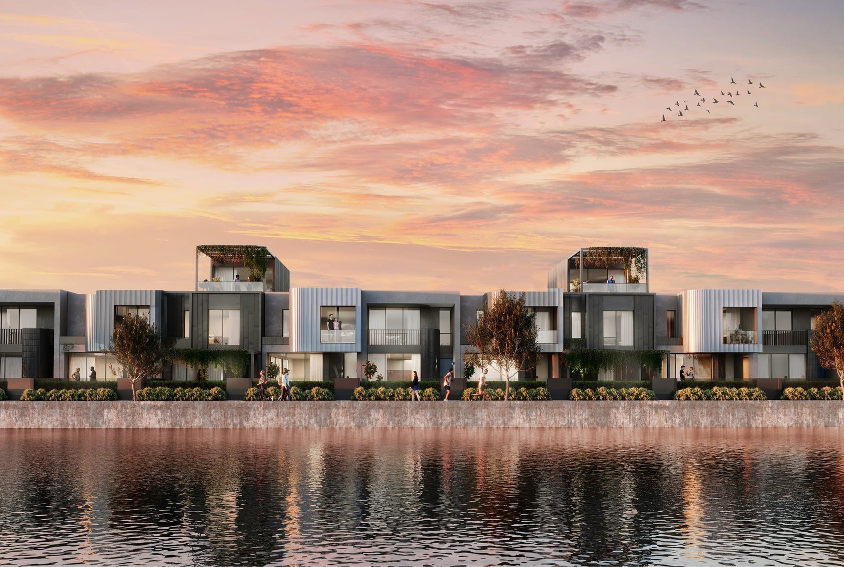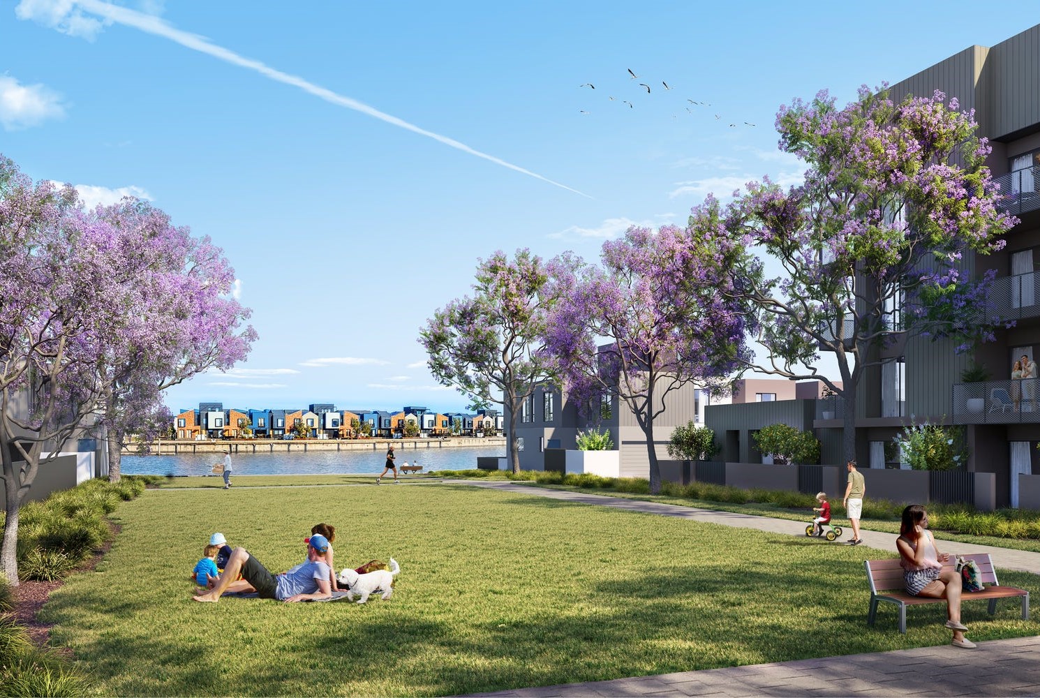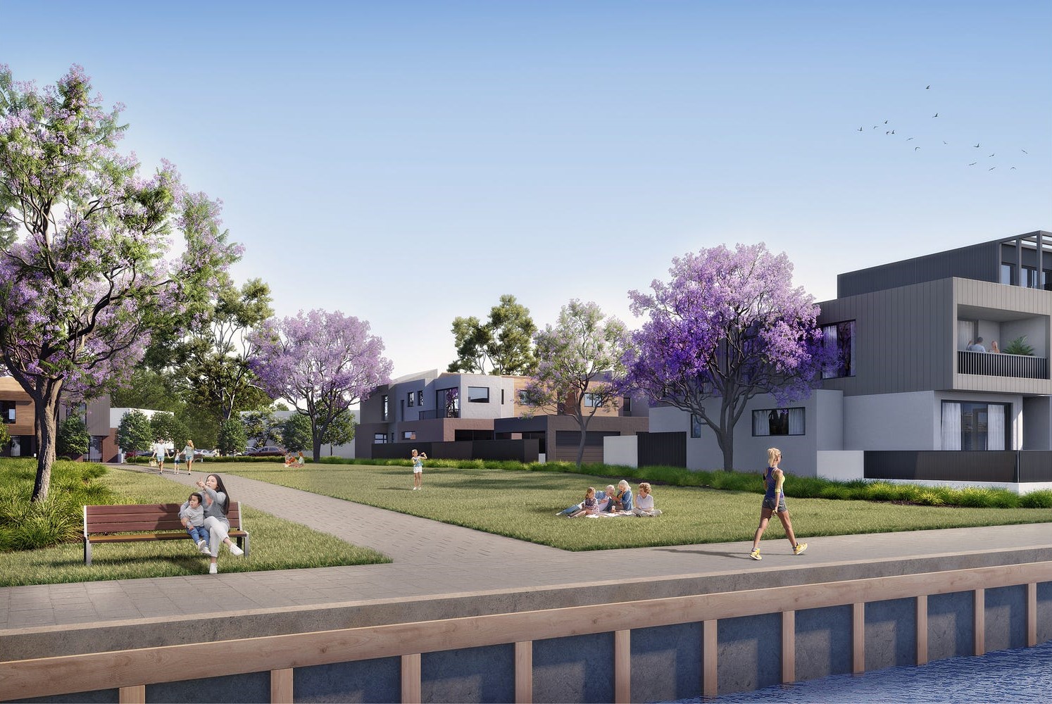 - All homes enjoy easy walking access to beautifully landscaped parks, open spaces and water vistas connected via an uninterrupted promenade and pedestrian bridge.